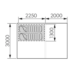 | Aufbau-/ Wohnfläche | 210 x 145 cm |