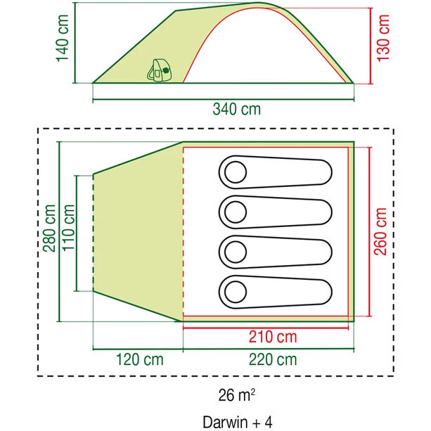 Das Darwin 4+ Kuppelzelt ist das perfekte Zelt für Festivals, Kurz – oder Wochenendtrips. Es verfügt über einen großen Vorraum, sowie einen Schlafbereich in dem bis zu vier Personen einen angenehmen Schlafplatz finden. In Netztaschen im Innenzelt kannst Du wichtige Gegenstände, die immer zur Hand sein sollen, verstauen. Das Moskitonetz in der Fronttür sorgt dafür, dass lästige Insekten Dich nachts in Ruhe lassen. Das Fiberglasgestänge des Darwin 4+ Kuppelzelts hält auch starkem Wind Stand und ist ein absolutes Leichtgewicht. Besonderen Komfort erhält das Zelt durch den wasserdichten Boden sowie die großen Fenster im Eingangsbereich, das auch bei schlechtem Wetter ausreichend Licht einlässt.
