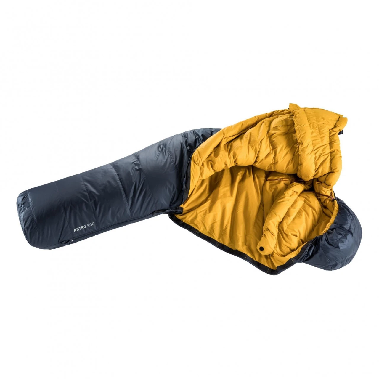 Der leichte Deuter Astro 500 REG Daunenschlafsack eignet sich ideal für Sportler und Reisende, die einen warmen, leichten Schlafsack mitnehmen möchten. Er ist in einem Mumien-Komfortschnitt gehalten und besitzt einen 2-Stufenpacksack mit einen doppelten Kordelzug. Dieser Schlafsack ist ein bluesign© Produkt was bedeutet, dass er umweltschonend produziert wurde, faire Produktionsbedingungen und einen geringen Einfluss auf die Umwelt hat. Außerdem wird nur zertifizierte Daune nach dem Responsible Down Standard (RDS) verwendet. Mit seiner Trapez-Kammerkonstruktion wird das Entstehen von Kältebrücken und das Verrutschen der Daunen verhindert. Darüber hinaus eignet sich der leichte Schlafsack ideal für Frühjahr, Sommer und Herbst. Zu den Ausstattungsmerkmalen des Astro 500 REG gehören eine Schlafsack-Innentasche, in der Du Wertsachen aufbewahren kannst, eine Reißverschluss-Klemmleiste, ein Wärmekragen, der Dich am Hals warmhält und eine ergonomische Konturkapuze mit rundem und flachem Schnürzug. Durch die dreidimensionale Fußbox bleiben Deine Füße schön warm und gewähren durch den ergonomischen Schnitt eine angenehme Fußfreiheit.