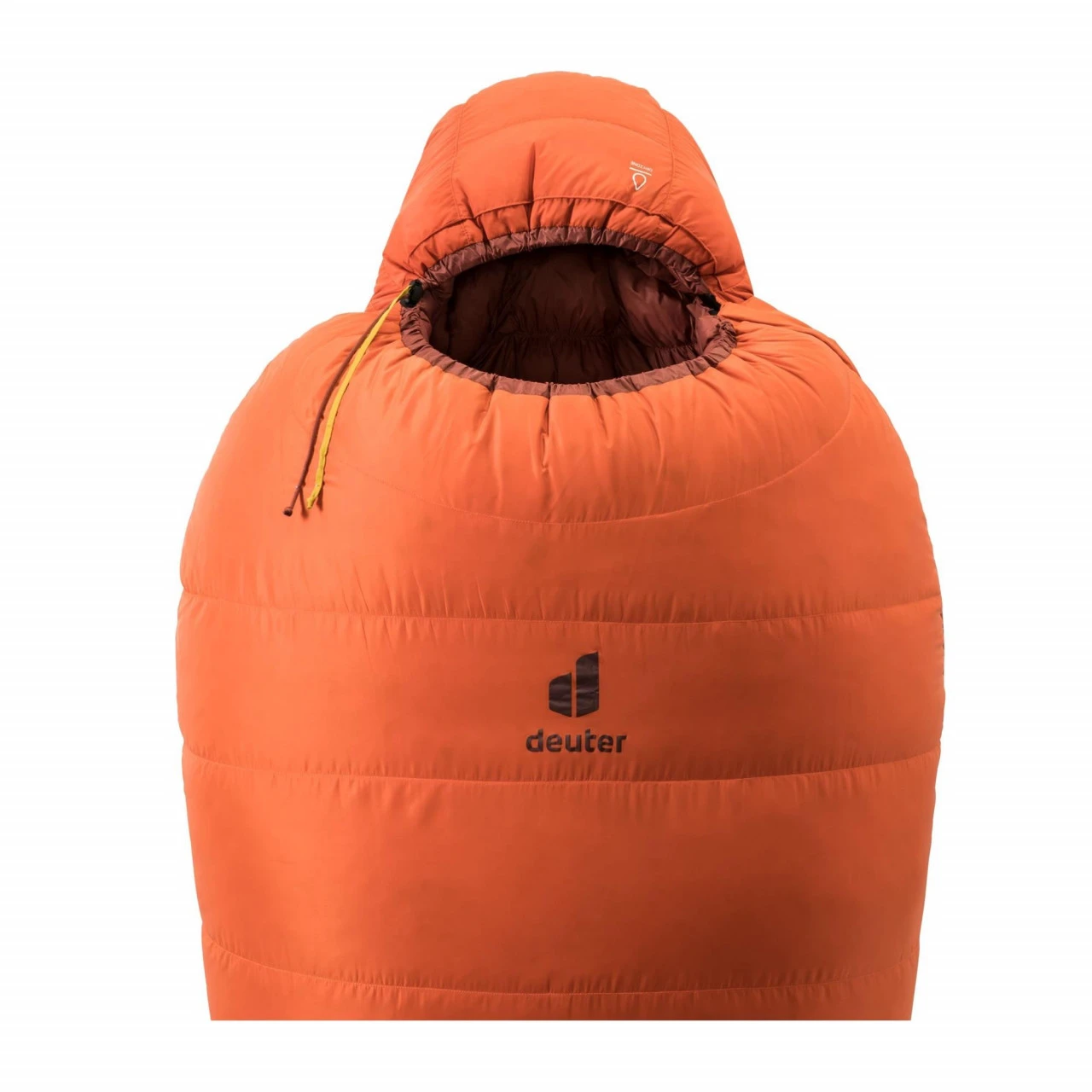 Der Deuter Astro Pro 1000 SL Damen Daunenschlafsack eignet sich ideal für ambitionierte Trekker und Bergsteiger, denen ein gutes Wärme-Gewichtsverhältnis und ein kleines Gewicht wichtig sind. Die SL Modelle für Damen sind in der Länge kürzer und sind an den Schultern und Füßen schmaler geschnitten. Außerdem haben die SL Modelle mehr Daunen-Füllung. Dieser Schlafsack ist ein bluesign© Produkt was bedeutet, dass er umweltschonend produziert wurde, faire Produktionsbedingungen und einen geringen Einfluss auf die Umwelt hat. Außerdem wird nur zertifizierte Daune nach dem Responsible Down Standard (RDS) verwendet. Die dehnbare Innenhülle dient der schnelleren Erwärmung und bietet somit zusätzlichen Komfort. Mit seiner Trapez-Kammerkonstruktion wird das Entstehen von Kältebrücken und das Verrutschen der Daunen verhindert. Darüber hinaus kannst Du den Schlafsack einfach mit den unterschiedlichen Schnürzügen an der Kapuze einstellen und das gesamte Jahr durchgängig benutzen. Zu den Ausstattungsmerkmalen des Astro Pro 1000 SL gehören eine Schlafsack-Innentasche, in der Du Wertsachen aufbewahren kannst, einen Reißverschluss-Klemmschutz, einen seitlich komprimierbaren Kompressionspacksack, einen Wärmekragen, der Dich am Hals warmhält und eine ThermoHood Kapuzenkonstruktion, mit der Dein Kopf immer warm eingehüllt ist. Durch die dreidimensionale Fußbox bleiben Deine Füße schön warm und gewähren durch den ergonomischen Schnitt eine angenehme Fußfreiheit.