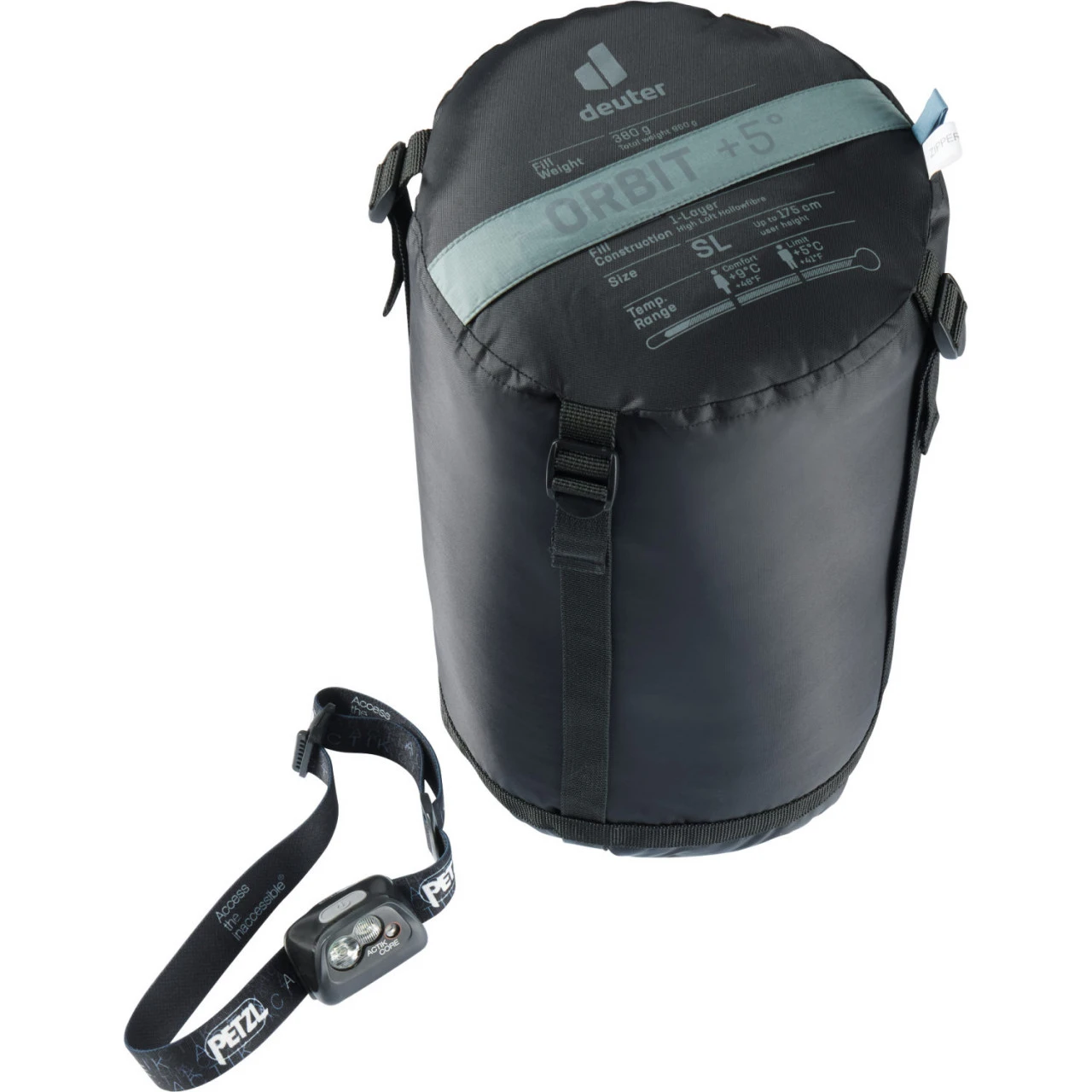 Der Deuter Orbit +5° SL Damen Kunstfaserschlafsack eignet sich ideal für Rundreisende und Buscamper, die eine gute Strapazierfähigkeit und Wärmeisolation beim Schlafsack benötigen. Dieser Schlafsack eignet sich durch sein leichtes Material optimal für den Sommer und kann auch als Decke verwendet werden. Zu den Ausstattungsmerkmalen des Orbit +5° SL gehören eine Innentasche für Deine Wertsachen, ein erhöhter Fußraum, ein Body Warmer Fleece, eine Konturkapuze mit Schnürzug, ein Reißverschluss-Klemmschutzband oben am Schlafsack und ein Kompressionspacksack. Zudem verfügt der Orbit +5° SL über einen Reißverschluss, durch den er mit einem zweiten Schlafsack gekoppelt werden kann.