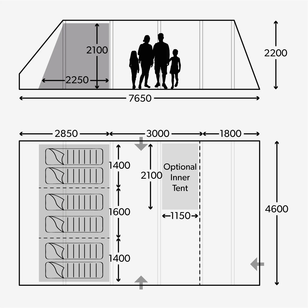 Das Dometic Ascension FTX 601 Familienzelt wird dich auf deinem nächsten Familienurlaub zuverlässig begleiten und dir und deiner Familie einiges an Platz bieten. In den drei abgedunkelten Schlafkabinen finden bis zu sechs Personen Platz, zudem kann eine weitere Schlafkabine hinzugefügt werden (optional Erwerbbar). Hinter den Seitentüren, die sich links und rechts vor den Schlafkabinen befinden, sind Moskitonetze integriert. In dem großen Vorraum könnt ihr euch gemütlich aufhalten, selbst wenn das Wetter mal nicht mitspielt oder du einen Moment im Schatten genießen willst. Der Raum hinter der Schlafkabine lässt sich bestens als Stauraum verwenden.