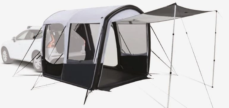 Das Dometic Auto AIR Eco D/A Busvorzelt ist perfekt um deinen PKW, SUV oder dein multifunktionales Fahrzeug zu erweitern. Du kannst das Vorzelt ganz nach deinen Wünschen entweder hinten oder seitlich an dein Fahrzeug anbringen. In das Innere des Zeltes gelangst du durch einen der drei Eingänge. Durch die großen Fenster kommt Licht ins Innere und macht das Zelt angenehm wohnlich. Wünschst du dir hingegen ein wenig mehr Schatten so kannst du ganz einfach das Fenster mittels Rollos abdunkeln. Ein integriertes Vordach spendet dir zusätzlichen Schatten. Eine wasserdichte Bodenplane, die mit einem Reißverschluss im Handumdrehen angebracht werden kann, schützt dich vor Feuchtigkeit sowie vor Insekten. Moskitonetze hinter den Türen und Fenstern des Dometic Auto AIR Eco D/A Busvorzeltes sorgen dafür, dass du die Fenster öffnen kannst damit du auch bei heißem Wetter eine angenehme Atmosphäre in deinem Vorzelt genießen kannst.