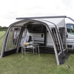 Mit dem Dometic Pop AIR Pro 340 Wohnwagenvorzelt verdoppelst Du die Wohnfläche auf Deinem Stellplatz und ist die optimale aufblasbare Vorzeltlösung für Deinen Eriba Wohnwagen. Auf der Wohnfläche 3,40 x 2,45 m mit Stehhöhe kannst du es dir gemütlich machen. Die großen kristallklaren Fenster sowie ausreichende Belüftung machen dieses Vorzelt zum perfekten Ort. Eine Netzwand hinter der Seitenscheibe sorgt für willkommenen Schatten und Belüftung bei heißem Wetter. Das Dach des Dometic Pop AIR Pro 340 Wohnwagenvorzeltes ist eine erhöhte, aufblasbare Dachkonstruktion, die dir eine hervorragende Kopffreiheit im Innenraum ermöglicht. Des Weiteren können die Frontteile mit ihren Reißverschlüssen abgenommen werden.