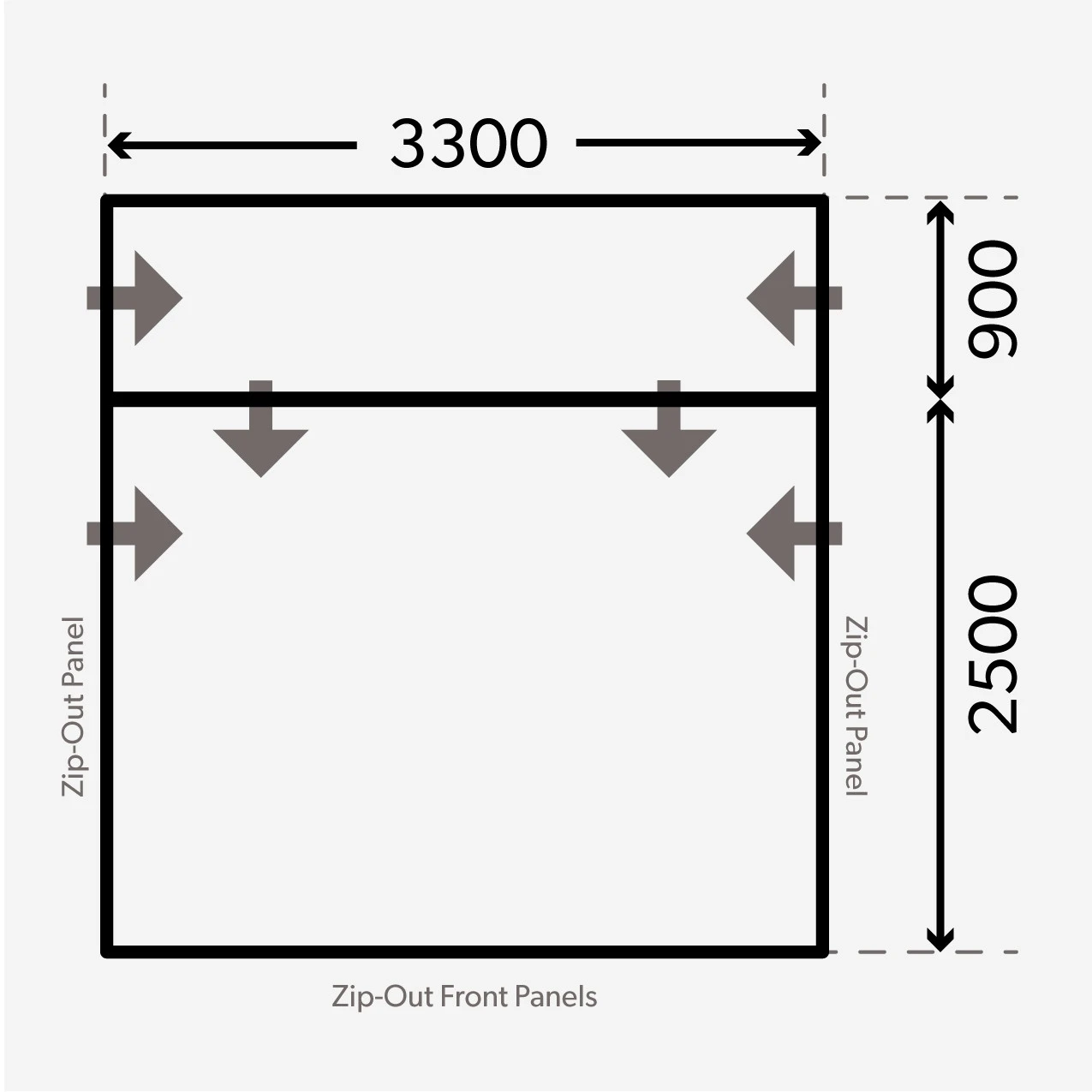 Das Dometic Rally AIR Pro 330 D/A Reisemobilvorzelt wird der perfekte Begleiter für deinen nächsten Urlaub. Du möchtest einen Ausflug machen? Kein Problem, du kannst das Vorzelt ganz unkompliziert auf dem Campingplatz stehen lassen, während du unterwegs bist. Für die Anbringung des Vorzeltes an Dein Fahrzeug hast du verschiedene Möglichkeiten: Du kannst das Vorzelt mittels dem angenähten 6 mm Keder in deine Markise oder Kederschiene einziehen. Alternativ kannst du die Schleuse über das Fahrzeugdach werfen und mit den angebrachten Gurtbändern und Heringen fixieren. Als dritte Option kannst du das Dometic Rally AIR Pro 330 D/A Reisemobilvorzelt auch mit einem optionales Drive-Away Kit an Dein Fahrzeug anbringen. Auf der großen Wohnfläche findest du Platz um es dir gemütlich zu machen. Die Front – und Seitenwände können problemlos herausgenommen werden. Solltest du nachts lüften wollen, kannst du die Fenster einfach öffnen – Moskitonetze sorgen dafür, dass du keinen ungebetenen Besuch von Insekten bekommst. In der Rückwand befinden sich zwei weitere Türen.