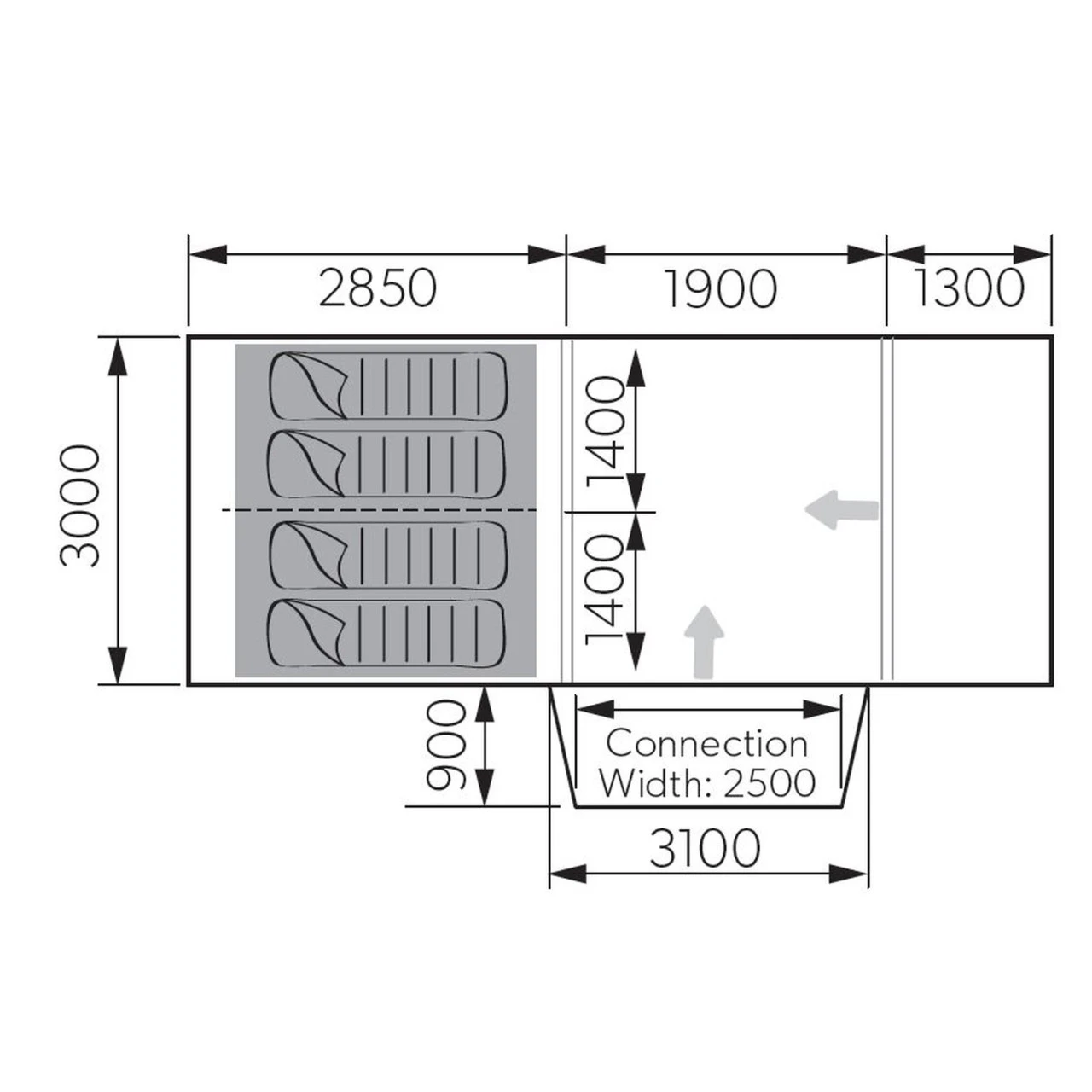 | Material- Zusammensetzung | Außenzelt: 65% Polyester, 35% Baumwolle; Innenzelt: 100% Polyester; Boden: 100% Polyäthylen |