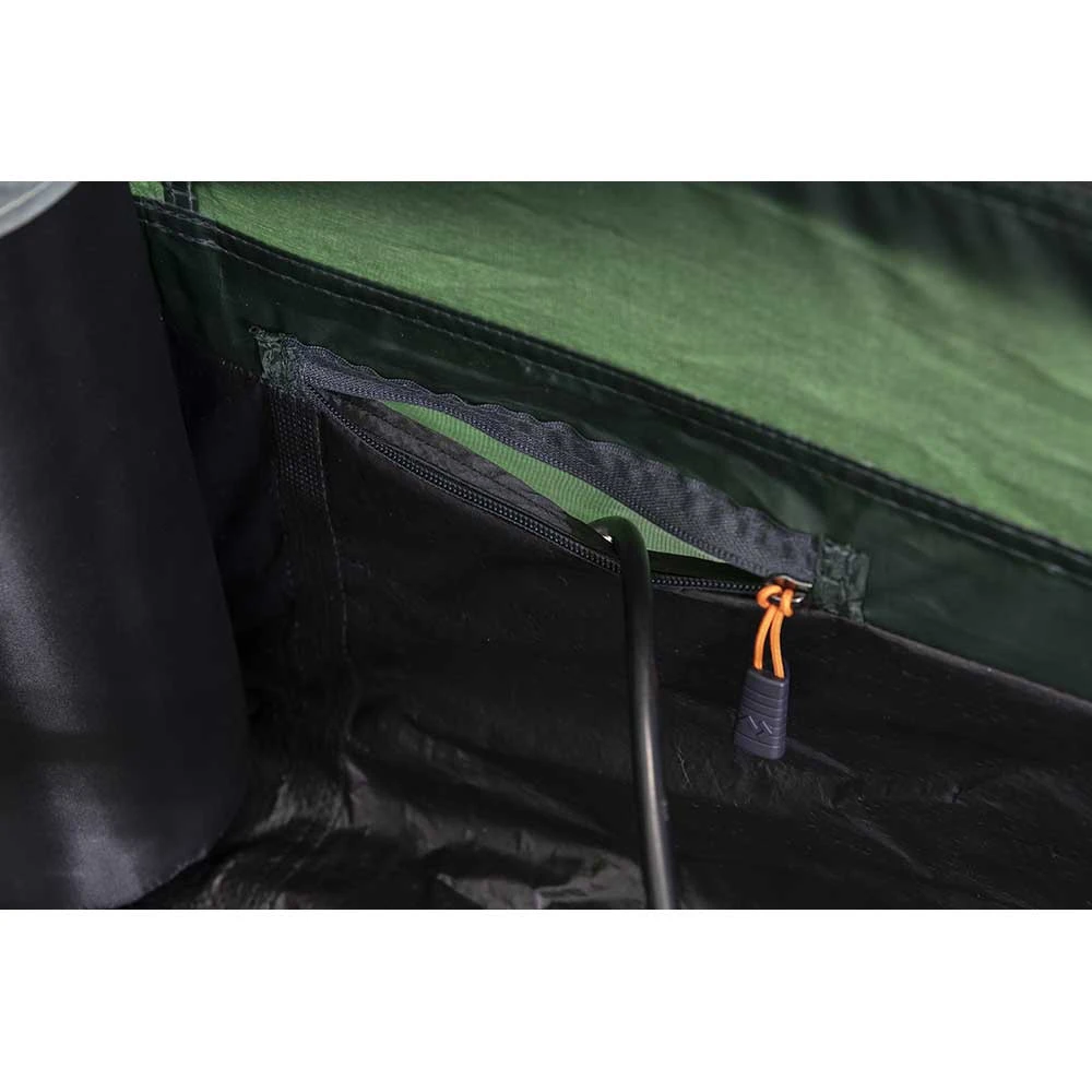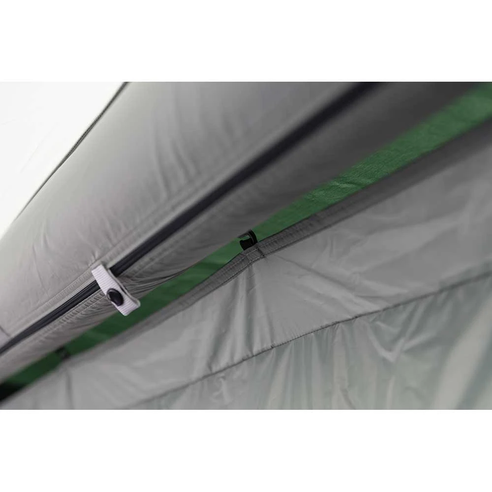Das Dometic Rarotonga FTT 601 TC Familienzelt wird dich bei all deinen Abenteuern mit deiner Familie zuverlässig begleiten. Große Fenster sorgen für hervorragenden Lichteinfall. In den beiden abgedunkelten Schlafkabinen finden bis zu sechs Personen einen gemütlichen Schlafplatz. Der Bereich hinter den Schlafkabinen kann gut als Stauraum genutzt werden. Hinter den Seitentüren, die sich links und rechts vor den Schlafkabinen befinden, sind Moskitonetzte integriert. Im großen, überdachten Nassbereich des Dometic Rarotonga FTT 601 TC Familienzeltes findet ihr einen gemütlichen Platz zum Verweilen, Spiele spielen und Essen.