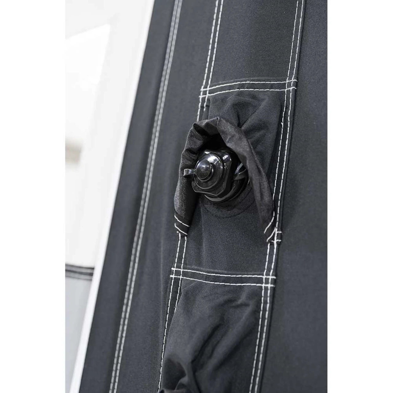 Bei dem Dometic Club AIR Pro 440 M Wohnmobilvorzelt trifft modernste Vorzelttechnologie auf klassische Optik. Durch die gerade Front kannst du die komplette Vorzelttiefe von 2,75 m ausnutzen und den Raum wohnlich gestalten, damit du dich in deinem Urlaub wie zuhause fühlst. Die herausnehmbaren Front- und Seitentüren sorgen dafür, dass du dich wie unter einer überdachten Terrasse sitzt. Eingebaute Moskitonetze in den Seitentüren schützen dich vor lästigen Insekten wenn du nachts dein Dometic Club AIR Pro 440 M Wohnmobilvorzelt lüften willst. Die Apex-Belüftung verbessert die Luftzirkulation im Zelt und es entsteht weniger Kondenswasser, was das Raumgefühl deutlich verbessert. Die Anschlusshöhe des Vorzeltes beträgt 265 – 295 cm. Dank des neuen variablem Anschlusshöhensystem kannst Du Wohnmobilvorzelt problemlos mittels eines Reißverschlusses, der oberhalb der Seitentür vernäht ist, auf unebenem Boden ausgleichen.