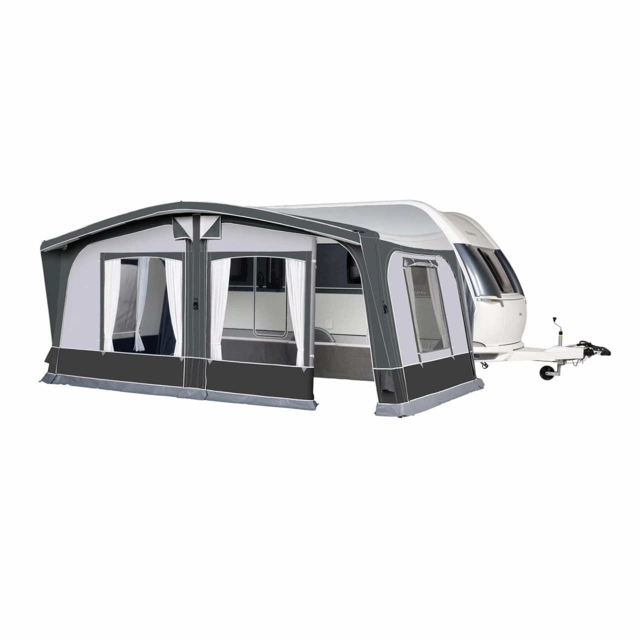 Das Doréma Octavia Air All Season Luftvorzelt, welches sein bewährte EAV-Luftschlauch Sytem aus dem Hause Doréma verwendet und somit Stahl- oder Alu-Gestänge ersetzt. Durch das hochwertige Ten Cate Material ist der Zeltstoff sehr robust und erzeugt weniger Schwitzwaser. Durch das Herausnehmen der Vorder- und Seitenwände kannst Du dir Dein persönliches Panorama schaffen. Das Doréma Octavia Air All Season Luftvorzelt ist durch unterschiedlich erhältliche Größen perfekt auf die Wohnwagenformen abgestimmt. Durch seine Rundform, macht es ebenfalls einen modernen Eindruck auf Campingplätzen.