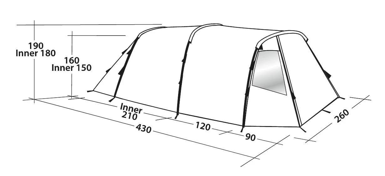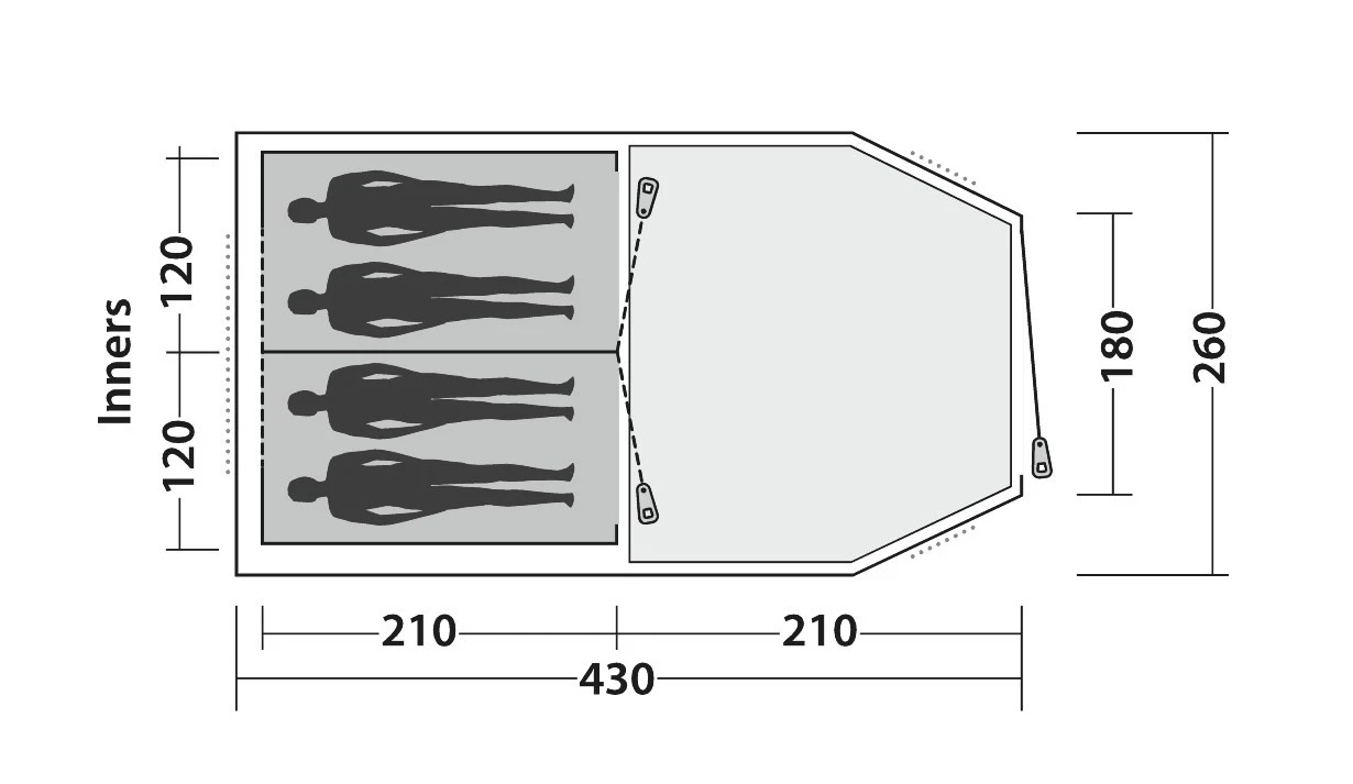 | Aufbau-/ Wohnfläche | 430 x 260 cm / 210 x 240 cm |