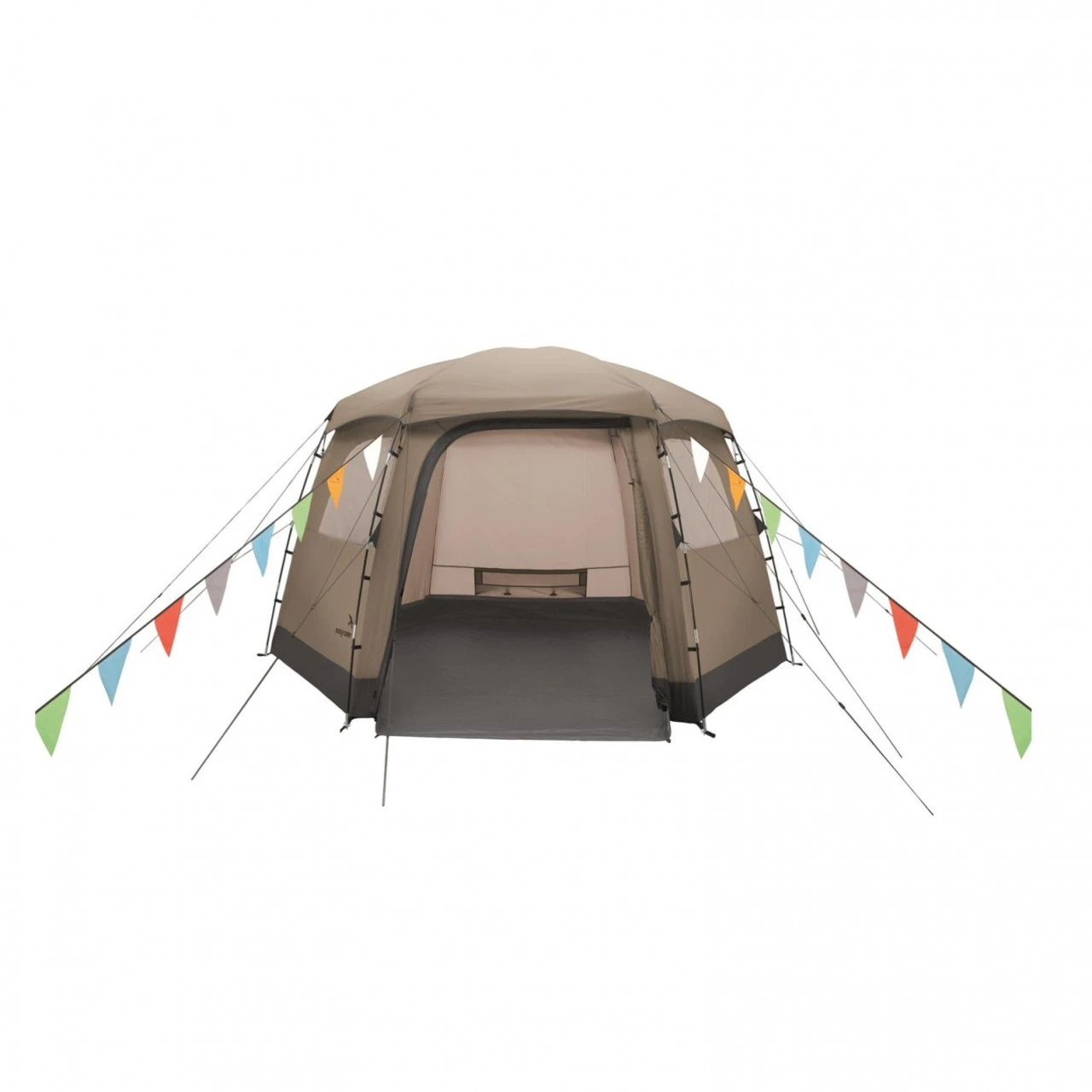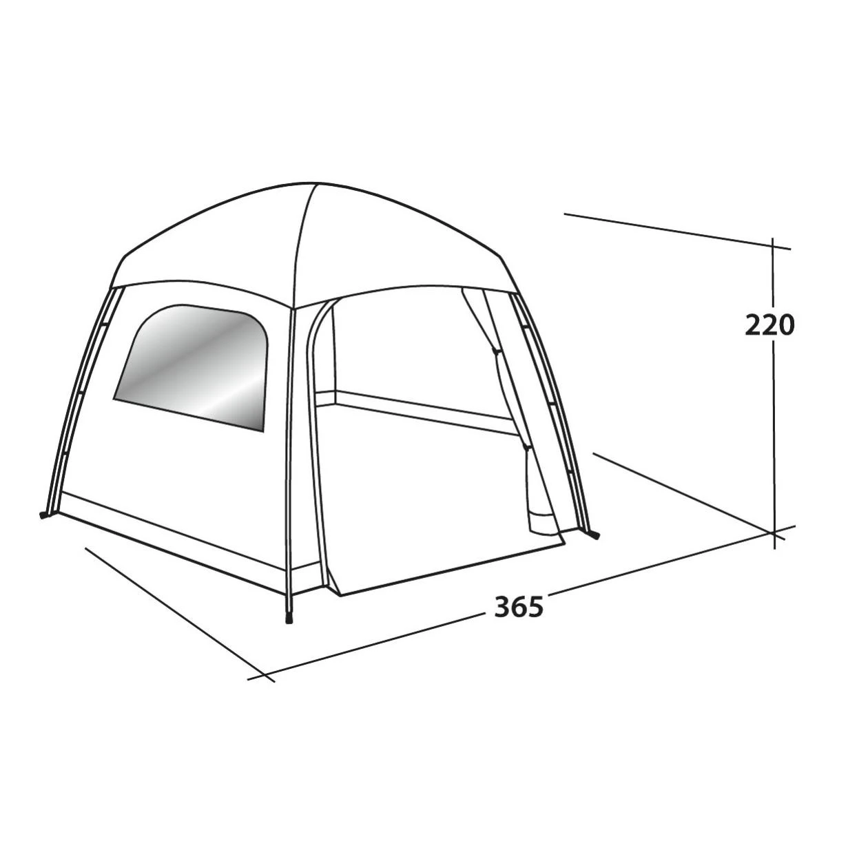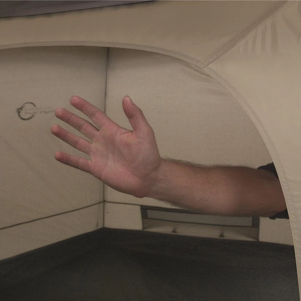 - Fronttür kann mit Reißverschluss am Zeltboden befestigt werden