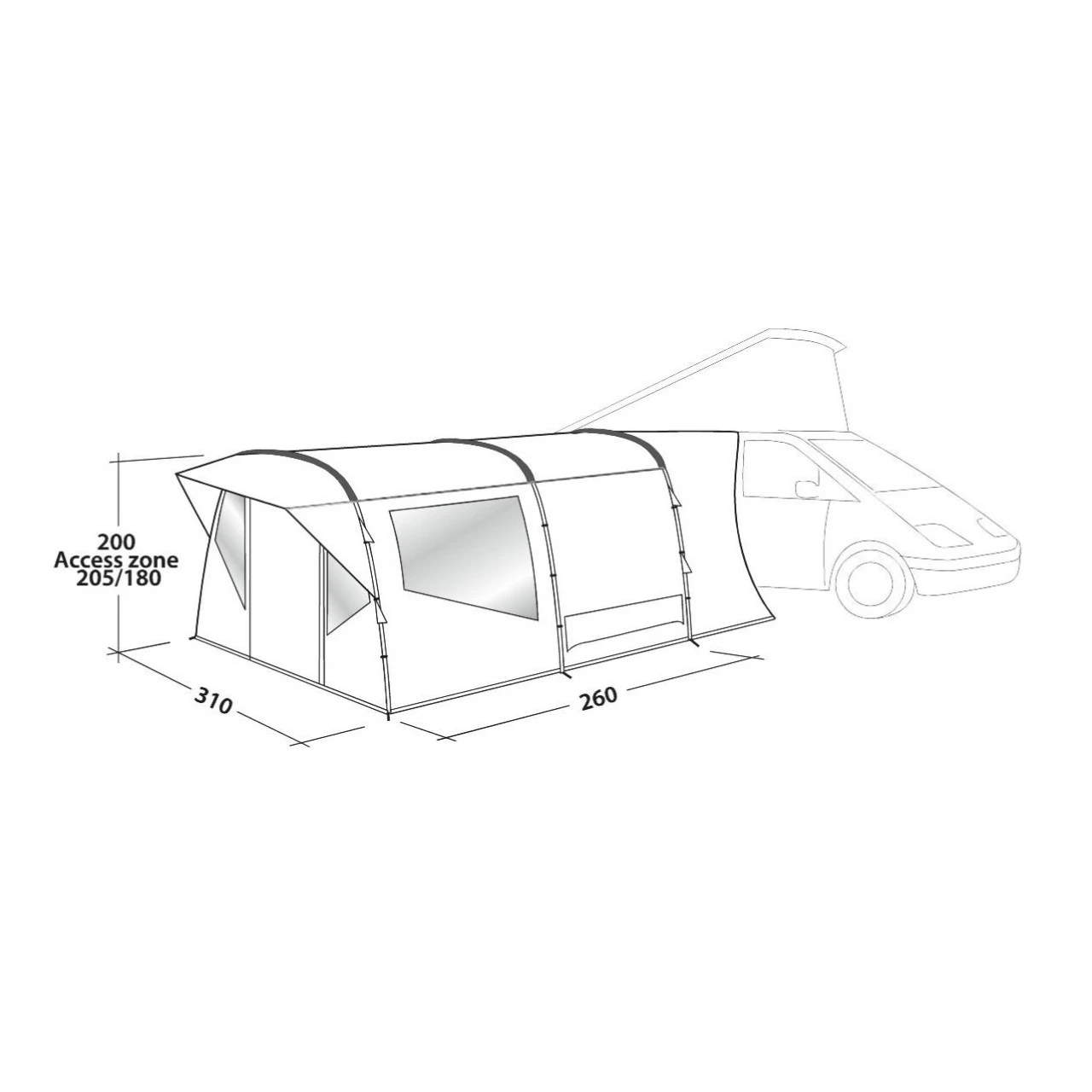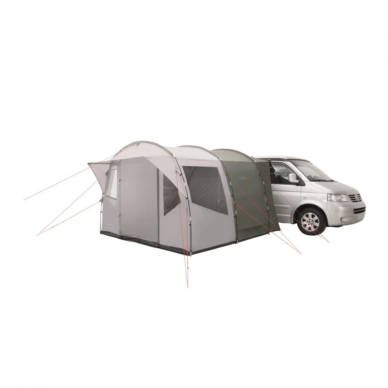Das easy camp Wimberly Busvorzelt hat eine flexible Tunnelkonstruktion und eignet sich ideal für Busse mit einer Anschlusshöhe von 180 und 205 cm. Es lässt sich schnell und einfach montieren. Durch den Fronteingang gelangst Du in das Innere Deines Zeltes, indem Du die volle Stehhöhe hast. Zu den weiteren Ausstattungsmerkmalen des Wimberly gehören fünf Fenster mit Vorhängen, eine Doppeltür an der Rückseite und eine Vordertür, große Lüftungsöffnungen sowie einen herausnehmbaren Zeltboden in Wannenkonstruktion.