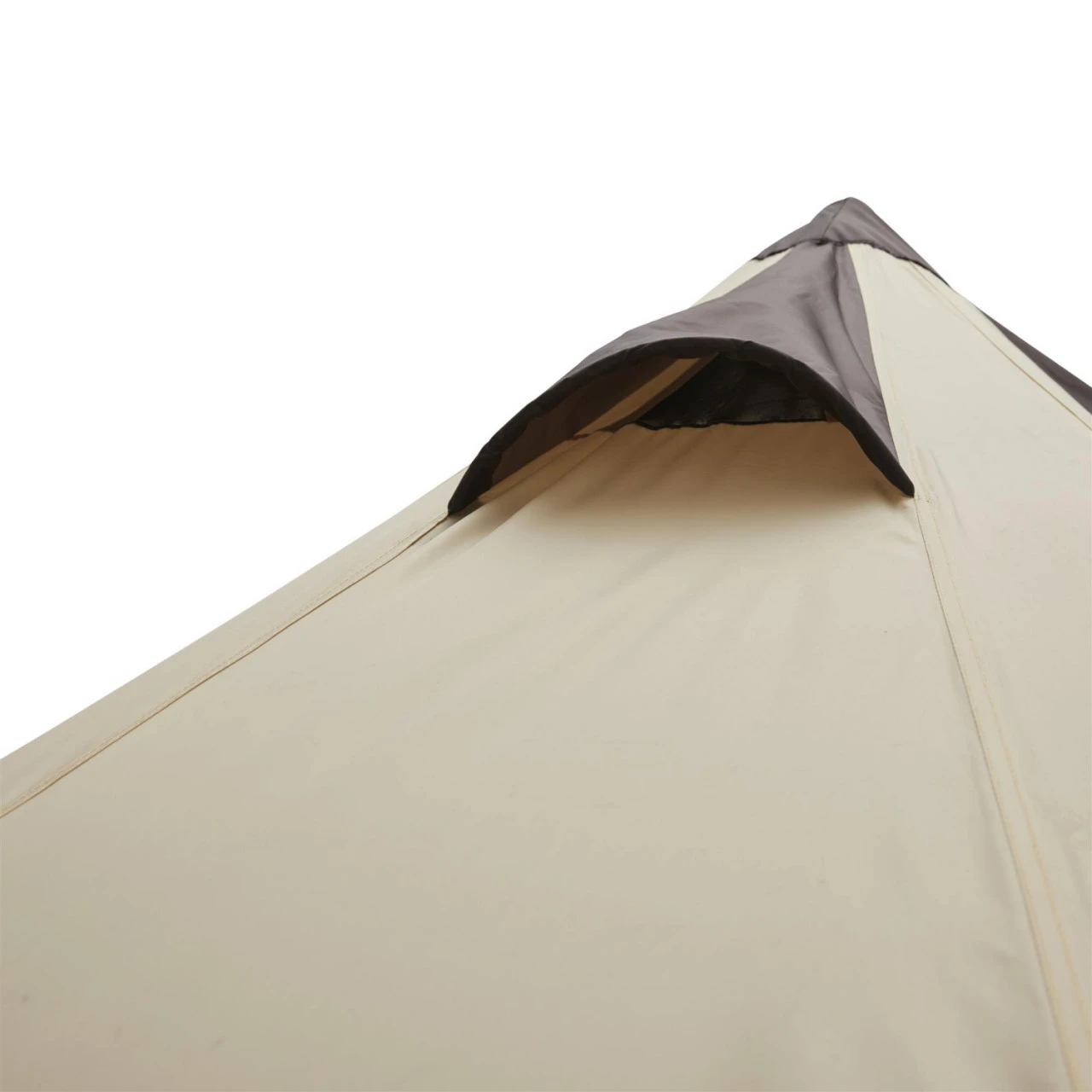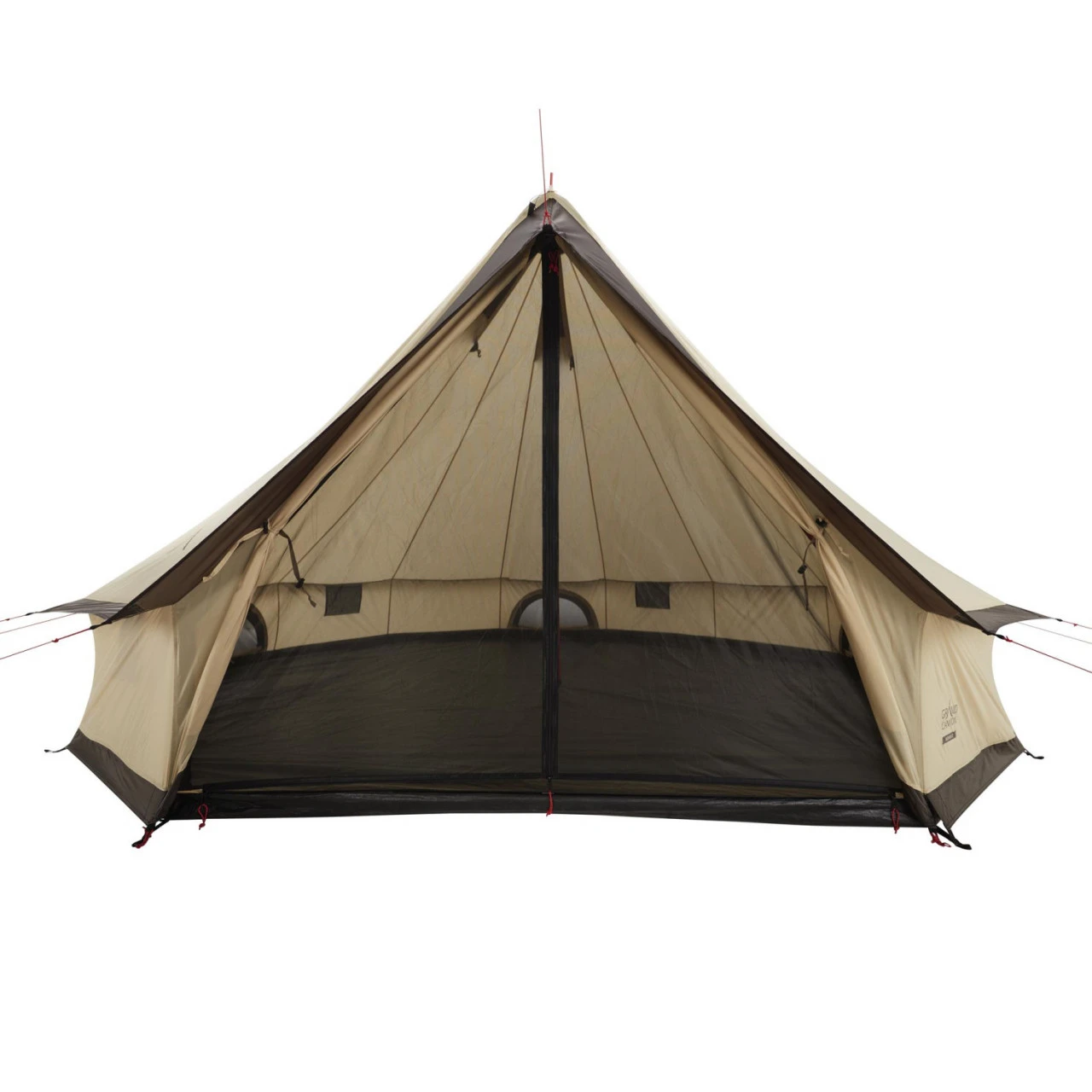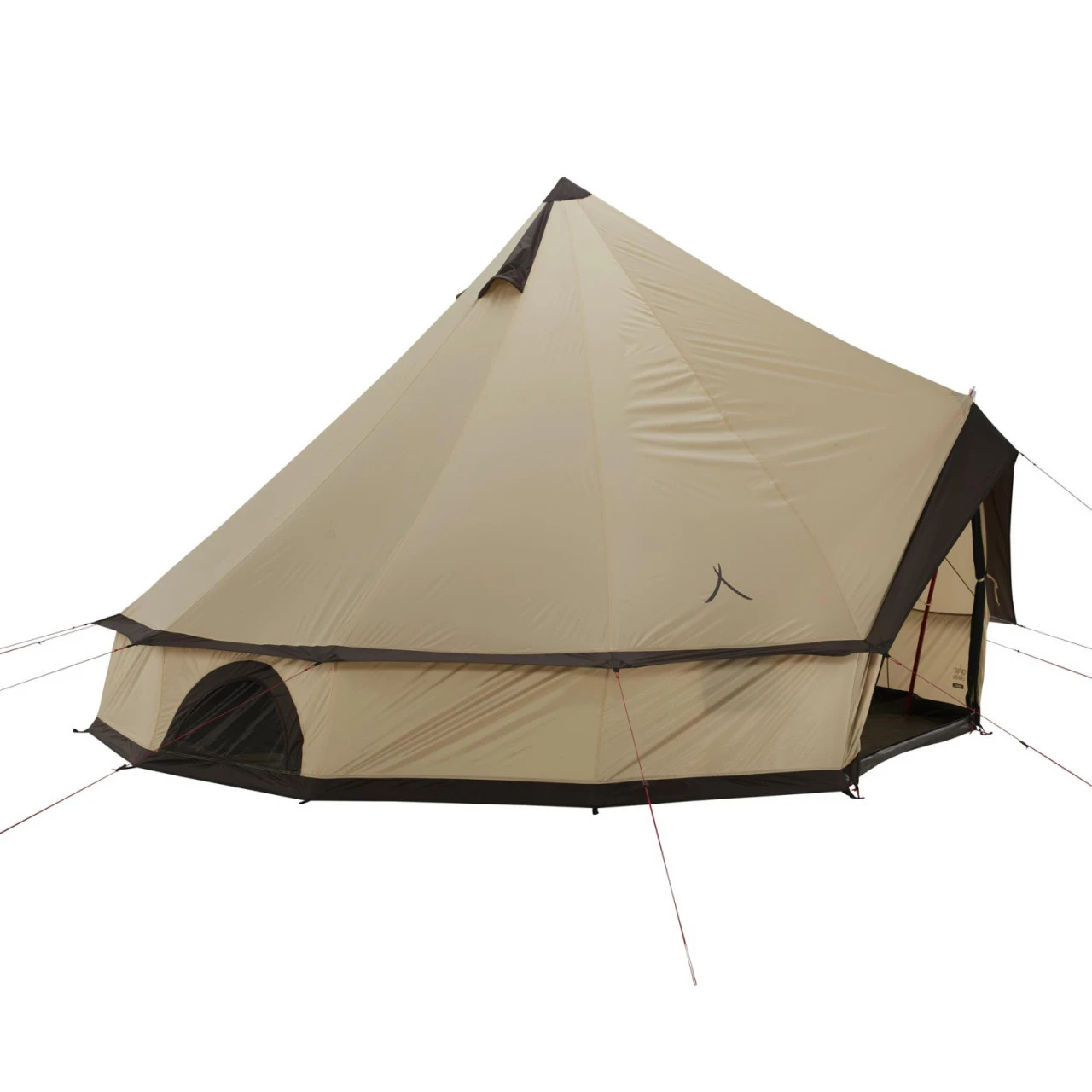 Das Grand Canyon Indiana 8 ist ein klassisches Tipi- oder Lagerzelt. Insgesamt acht Personen können hier einen Schlafplatz finden und damit ein Abenteuer besonderer Geselligkeit genießen. Der große A-förmige Eingang lässt auf Wunsch viel Licht ins Zelt und öffnet es zur Natur hin. Tagsüber kann das Zelt gut als Gemeischaftsraum genutzt werden, da die angenehme Stehhöhe und runde grundform des Modells eine angenehme Raumathmosphäre schaffen. Der eingenähte Zeltboden ist äußerst robust, wasserdicht und hält außerdem Insekten auf Abstand. Außerdem trägt er erheblich zum einfachen Auf- und Abbau des Indiana 8 Familienzeltes bei.