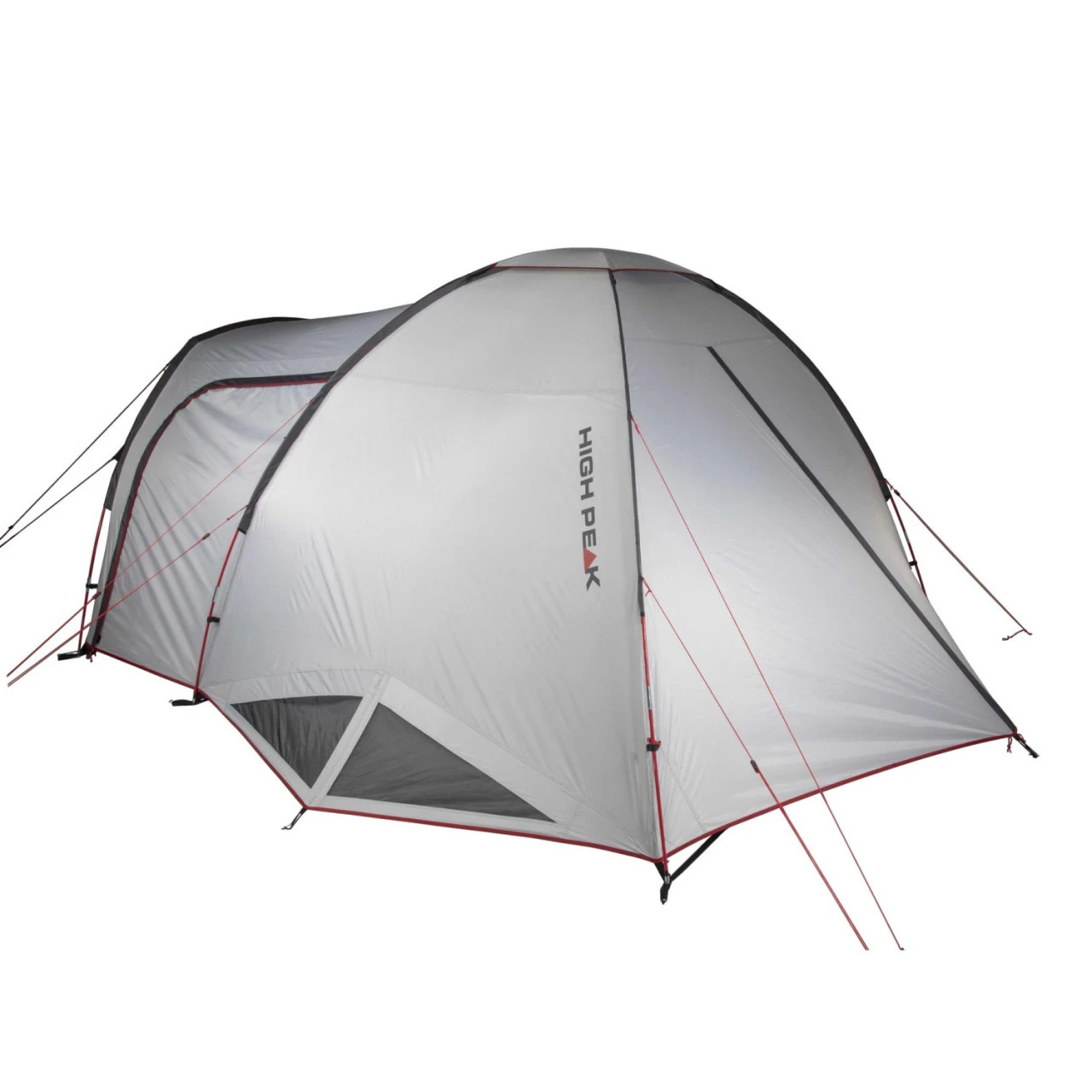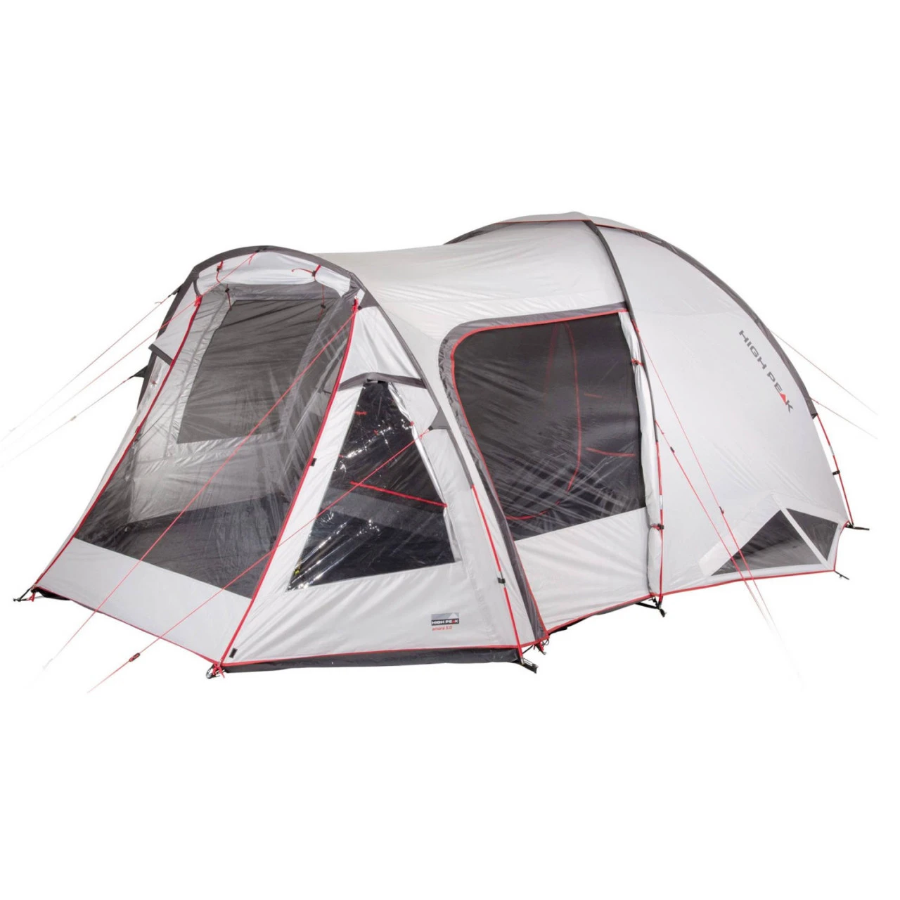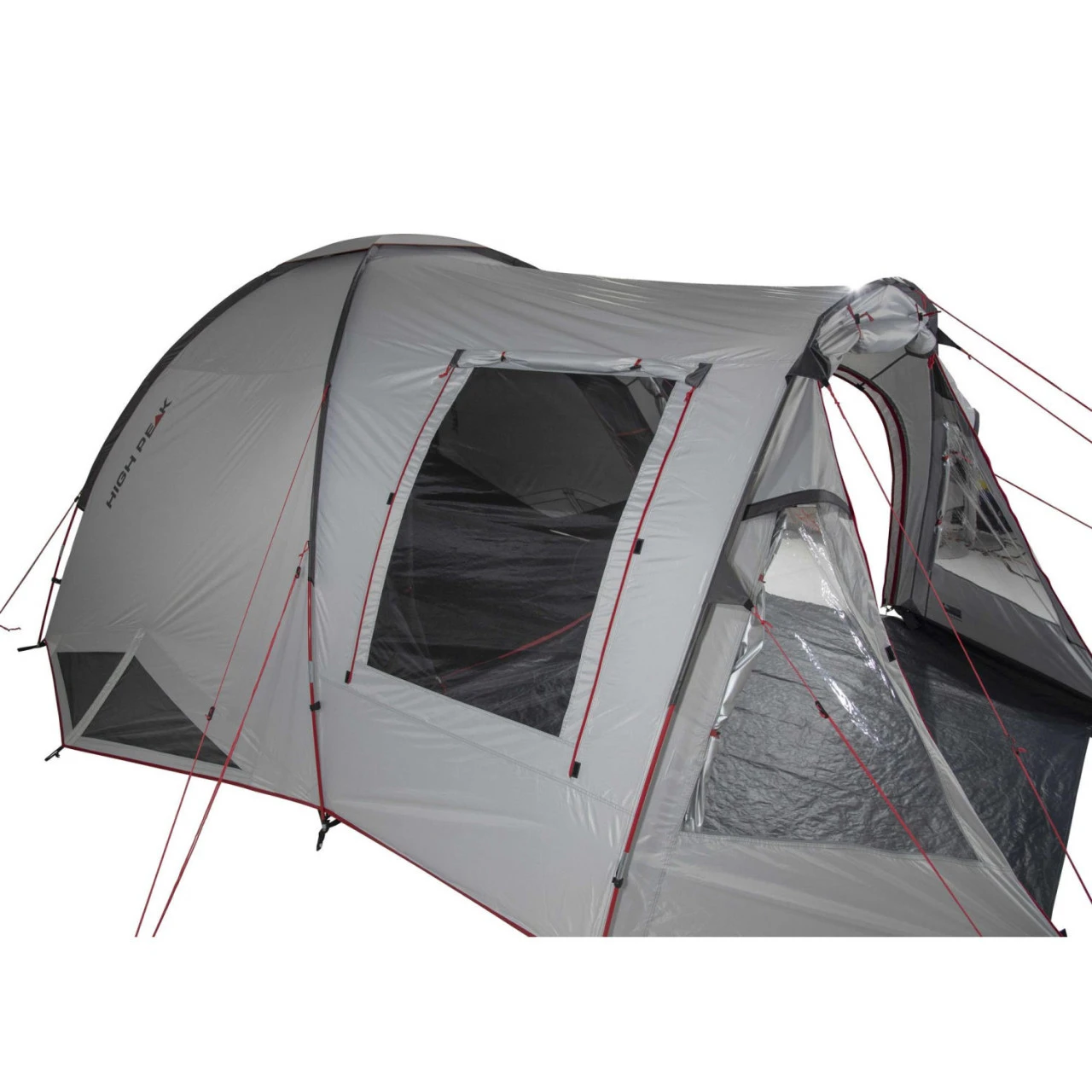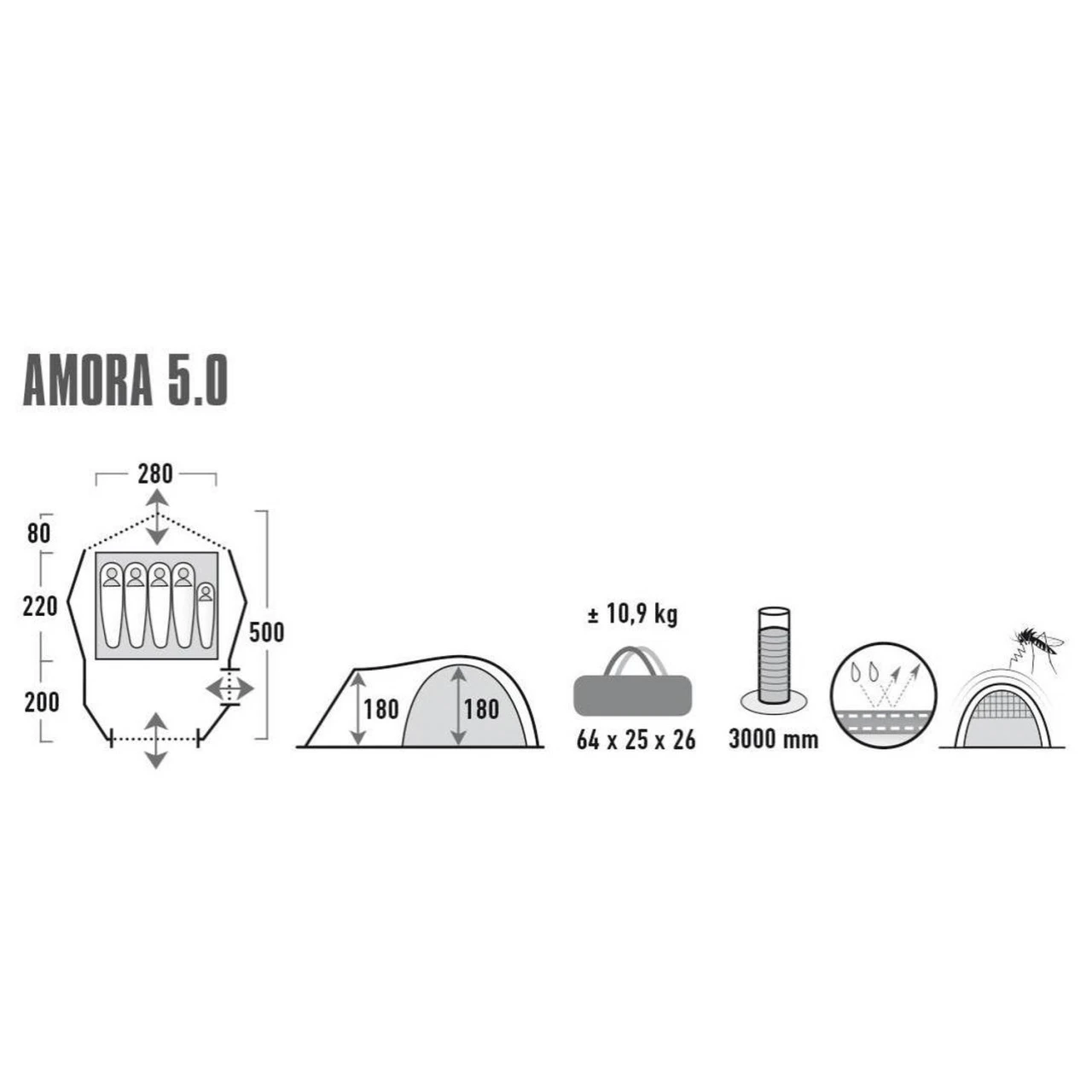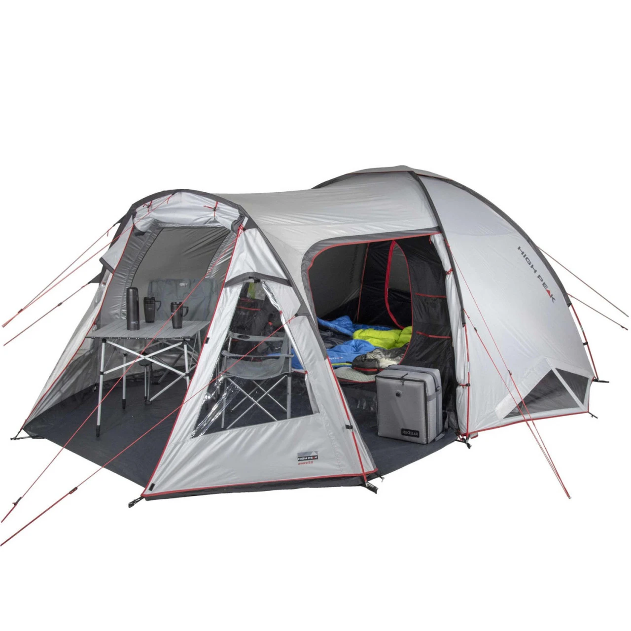 Das High Peak Amora 5.0 Familienzelt bietet vier bis fünf Personen Platz. Eingeteilt in ein Innenzelt und einen Vorraum, ist beides vom besonders UV-beständigen Gewebe des Außenzeltes überspannt und erhöht so die Lebensdauer Deines Zeltes enorm. Der Vorbau im Tunneldesign ermöglicht optimale Raumnutzung: Hier kann an regnerischen Tagen gesellschaftlich zusammengesessen werden, während die großen Fensterflächen viel Licht ins Innere leiten und der eingenähte Zeltboden Nässe und Schmutz draußen halten. Die Kombination aus Hochentlüftung, Dauerventilation und Bodenventilation schafft ein angenehmes Zeltklima, auch bei starker Sonneneinstrahlung und kann individuell reguliert werden. Eine abgedunkelte Schlafkabine mit Organizer und Innentaschen erleichtert den Campingalltag und rundet das Design des Amora 5.0 ab.