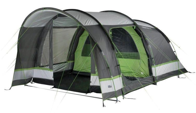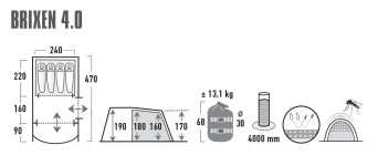Das High Peak Brixen 4.0 Familienzelt im Tunneldesign gehalten, bietet 4 Personen Platz und überzeugt mit vielen praktischen Features. In das Innere des Zeltes gelangst Du durch den überdachten Fronteingang. Der Eingang ist mit einem Mesh-Fenster ausgestattet. Neben dem Fronteingang kannst Du auch über den Seiteneingang ins Zelt gelangen. Auch diese Tür ist mit Mesh ausgestattet, die so Insekten fernhalten soll. Im Inneren Deines Zeltes hast Du einen großen Wohn-/Stauraum, der Dir viel Platz zum Kochen, Spielen, Entspannen und der Lagerung von Equipment bietet. Durch die Klarsichtfolienfenster kommt viel Licht in Dein Zelt. Möchtest Du hingegen mehr Privatsphäre genießen, kannst Du die Gardinen vorziehen. Außerdem verfügt das Brixen 4.0 über eine abgedunkelte Schlafkabine. Die Schlafkabine sind mit einer Reißverschluss-Trennwand voneinander getrennt. Für einen besseren Schlafkomfort ist die Schlafkabine mit einer Vario Vent Eingang mit Meshfenstern ausgestattet. Im Innenzelt befinden sich an den Seitenwänden Innentaschen. Dort kannst Du Zeitschriften oder Ähnliches verstauen. Zu den weiteren Ausstattungsmerkmalen des Brixen 4.0 gehören unter anderem eine Lampenhalterung, eine Dauerventilation, verstellbare Spanngurtbänder, ein Kompressionspacksack und eine Positionsmarkierung, die das Einhängen des Außenzeltes erleichtert.