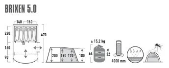 Das High Peak Brixen 5.0 Familienzelt im Tunneldesign gehalten, bietet 5 Personen Platz und überzeugt mit vielen praktischen Features. In das Innere des Zeltes gelangst Du durch den überdachten Fronteingang. Der Eingang ist mit einem Mesh-Fenster ausgestattet. Neben dem Fronteingang kannst Du auch über den Seiteneingang ins Zelt gelangen. Auch diese Tür ist mit Mesh ausgestattet, die so Insekten fernhalten soll. Im Inneren Deines Zeltes hast Du einen großen Wohn-/Stauraum, der Dir viel Platz zum Kochen, Spielen, Entspannen und der Lagerung von Equipment bietet. Durch die Klarsichtfolienfenster kommt viel Licht in Dein Zelt. Möchtest Du hingegen mehr Privatsphäre genießen, kannst Du die Gardinen vorziehen. Außerdem verfügt das Brixen 5.0 über zwei abgedunkelte Schlafkabinen. Die beiden Schlafkabinen sind mit einer Reißverschluss-Trennwand voneinander getrennt. Möchtest Du einen großen Schlafraum haben, kannst Du die Trennwand herauszippen. Für einen besseren Schlafkomfort sind die Schlafkabinen mit zwei Vario Vent Control Eingängen mit Meshfenstern ausgestattet. Im Innenzelt befinden sich an den Seitenwänden Innentaschen. Dort kannst Du Zeitschriften oder Ähnliches verstauen. Zu den weiteren Ausstattungsmerkmalen des Brixen 5.0 gehören unter anderem eine Lampenhalterung, eine Dauerventilation, verstellbare Spanngurtbänder, ein Kompressionspacksack und eine Positionsmarkierung, die das Einhängen des Außenzeltes erleichtert.