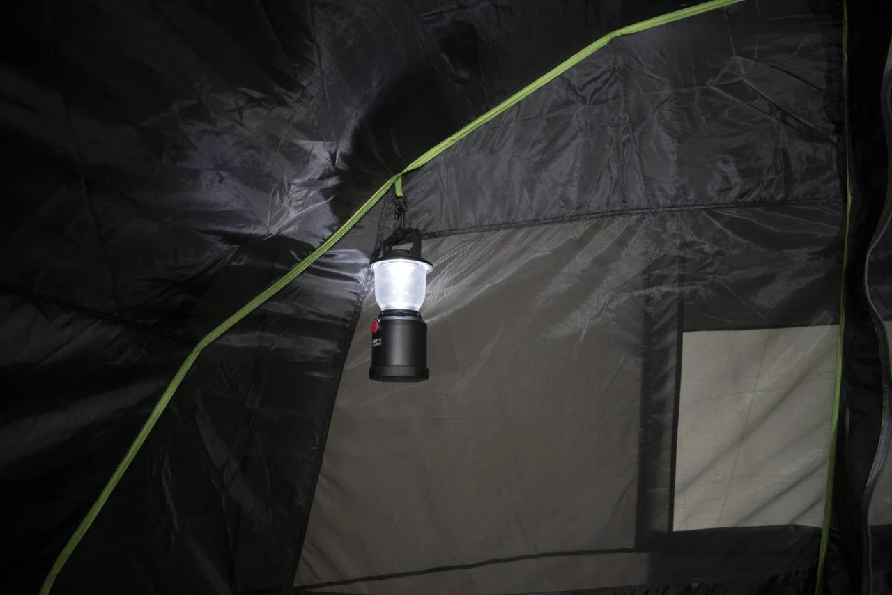 Das High Peak Garda 5.0 Familienzelt im Tunneldesign gehalten, bietet 5 Personen Platz und überzeugt mit vielen praktischen Features. Der Nassbereich verfügt über Klarsichtfolien-Fenster und bietet Dir einen geschützten Zugang ins Zelt. In das Innere des Zeltes gelangst Du durch die große Verandafront, die Du komplett oder nach Deinen Bedürfnissen auch halb öffnen kannst. Einen weiteren Zugang ins Zelt bekommst Du über den Seiteneingang. Dieser ist zusätzlich mit einer Mesh-Tür ausgestattet. Im Inneren Deines Zeltes hast Du einen großen Wohnraum, der Dir viel Platz zum Kochen, Spielen und Entspannen bietet. Durch die Klarsichtfolienfenster kommt viel Licht in Dein Zelt. Möchtest Du hingegen mehr Privatsphäre genießen, kannst Du die Gardinen vorziehen. Außerdem verfügt das Garda 5.0 über zwei abgedunkelte Schlafkabinen. Die beiden Schlafkabinen sind mit einer Reißverschluss-Trennwand voneinander getrennt. Möchtest Du einen großen Schlafraum haben, kannst Du die Trennwand herauszippen. Für einen besseren Schlafkomfort sind die Schlafkabinen mit zwei Vario Vent Control Eingängen mit Meshfenstern ausgestattet. Die Meshfenster können bei Bedarf geschlossen werden. Im Innenzelt befinden sich an den Seitenwänden Innentaschen. Dort kannst Du Zeitschriften oder Ähnliches verstauen. Zu den weiteren Ausstattungsmerkmalen des Garda 5.0 gehören eine Lampenhalterung, ein Dual Flow Vent System, verstellbare Spanngurtbänder, ein rolldown Packsack mit Kompressionsgurten und eine Positionsmarkierung, die das Einhängen des Außenzeltes erleichtert.