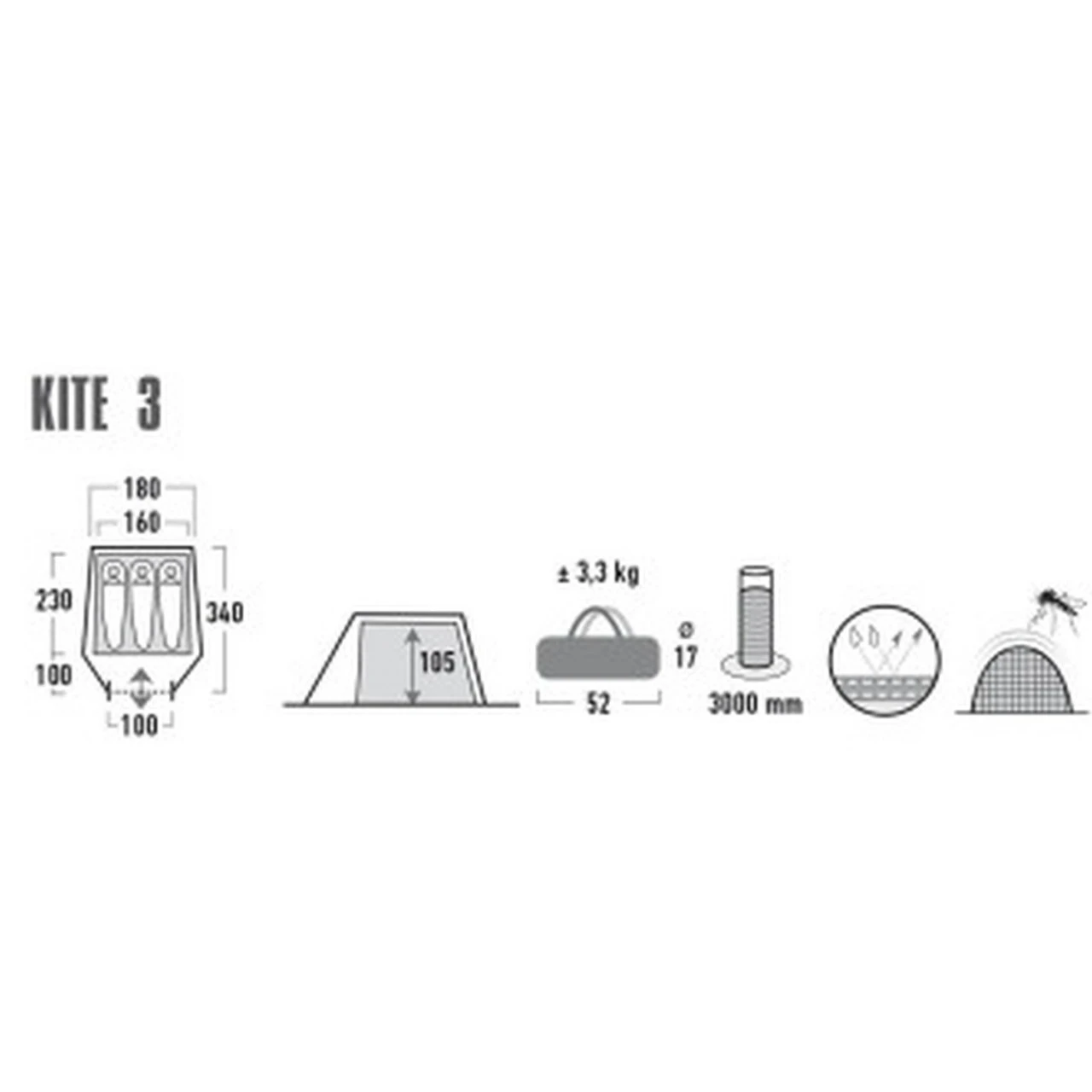 Das High Peak Kite 3 – Zelt bietet ausreichend Platz für drei Personen in einer Schlafkabine und einem Vorzelt mit Boden. Das Vorzelt ermöglicht das trockene Verstauen des Gepäcks. Die Tür der Schlafkabine kann ganz einfach weggepackt werden, um dauerhaft offen stehen zu können. Durch den Einsatz von Mesh und Dauerventilationen ist das Zelt optimal belüftet, ohne dass Insekten oder Schmutz in sein Inneres gelangen. Das High Peak Kite 3 – Zelt verfügt sogar über ein kleines Klarsichtfenster, sodass auch bei geschlossenem Eingang etwas Licht hereinscheinen kann.