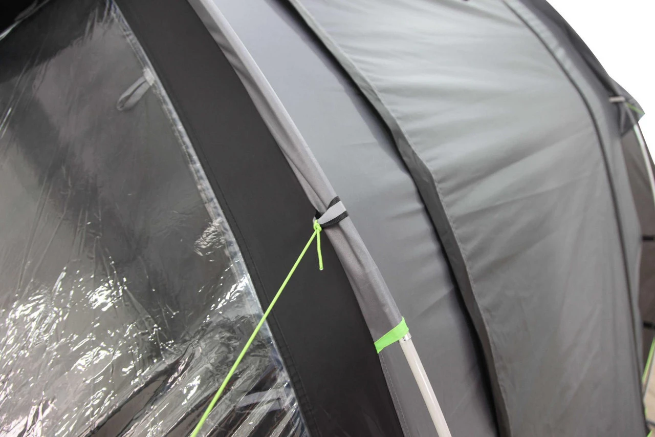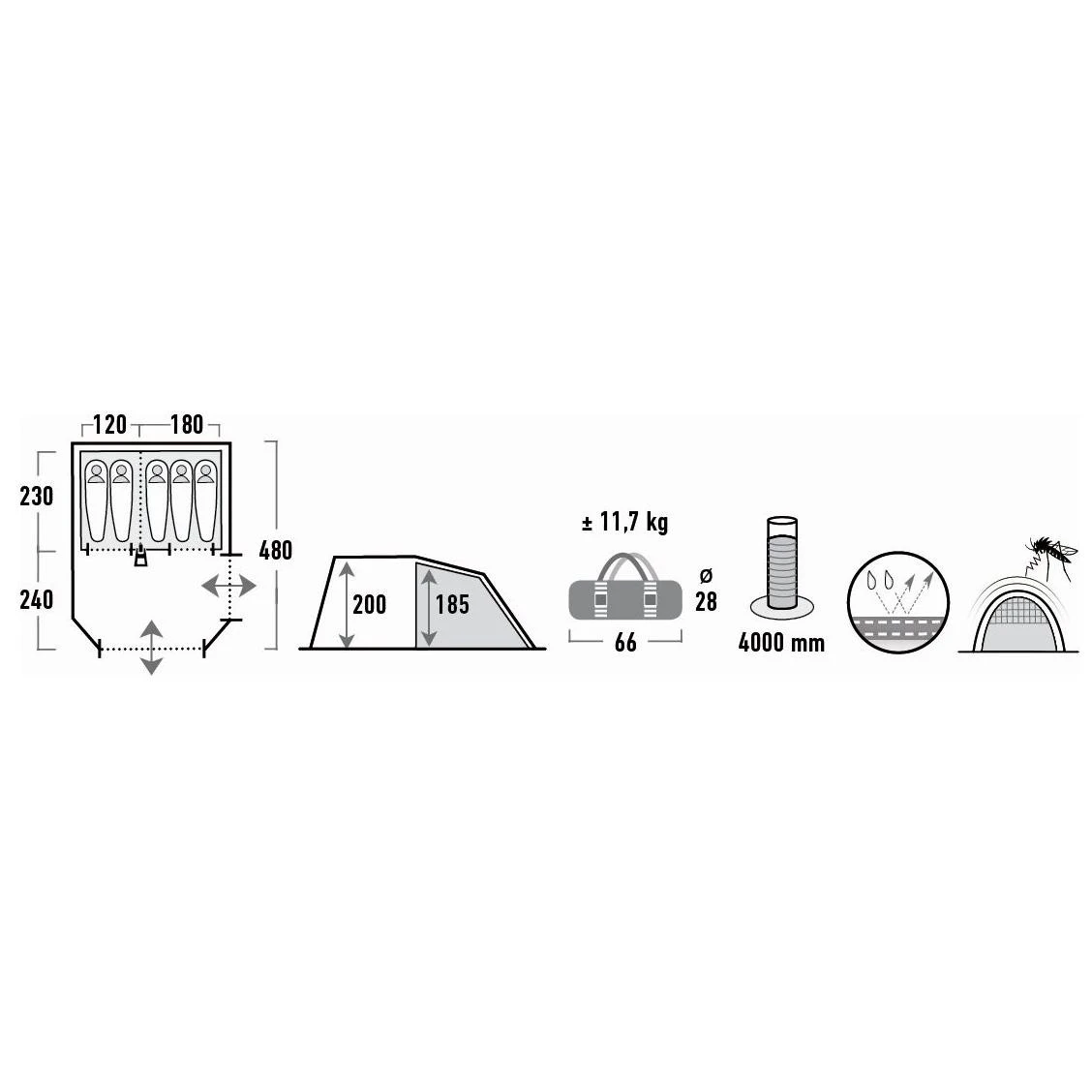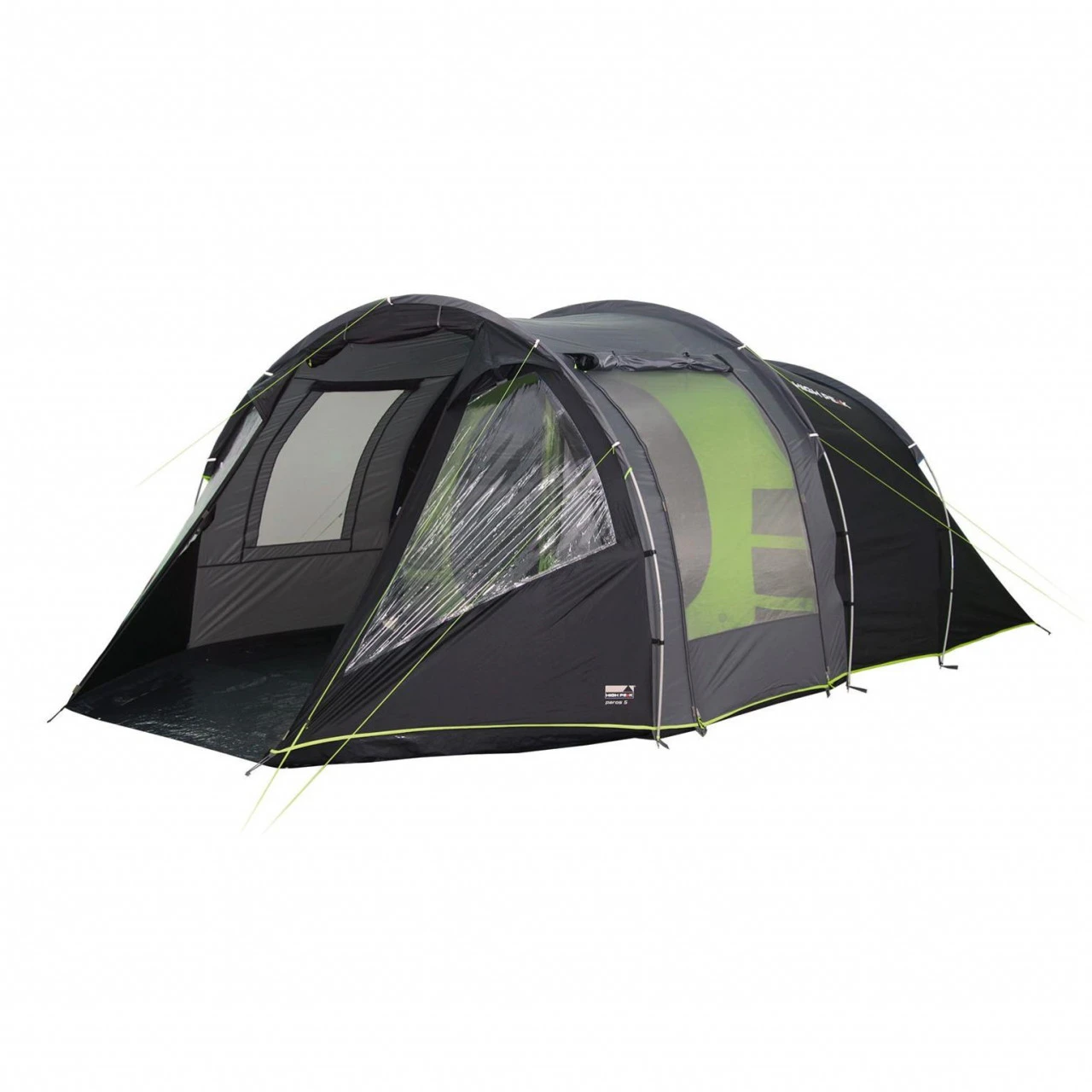 Das High Peak Paros 5 Familienzelt bietet in einem großen, trennbaren Schlafraum genügend Platz für bis zu fünf Personen und ist ideal für das Campen mit der ganzen Familie geeignet. Der große, dank Klarsichtfolienfenstern angenehm helle Wohnraum erweist sich als perfekter Ort zum Kochen, Spielen und Entspannen. Zum Schutz Ihrer Privatsphäre lassen sich die Fenster mit Gardinen verschließen. Durch die drei wetterfesten Dauerventilationsöffnungen, die immer geöffnet bleiben müssen, wird das Tunnelzelt einwandfrei belüftet. Durch die Wassersäule von 4000 mm und einer zusätzlichen Regenrinne der Reißverschlussabdeckung ist das Zelt absolut wasserdicht. Da beim Aufbau das Außenzelt zuerst errichtet wird, bleiben auch dort bei verregnetem Wetter die Innenzelte trocken. Der praktische Gaze-Eingang des Innenzeltes gibt eine zusätzliche, mückenfreie Belüftungsmöglichkeit und kann bequem von innen variabel bedient werden. Das High Peak Paros 5 Familienzelt ist mit Organizern im Wohn- und Schlafraum, sowie mit einer Lampenhalterung ausgestattet.