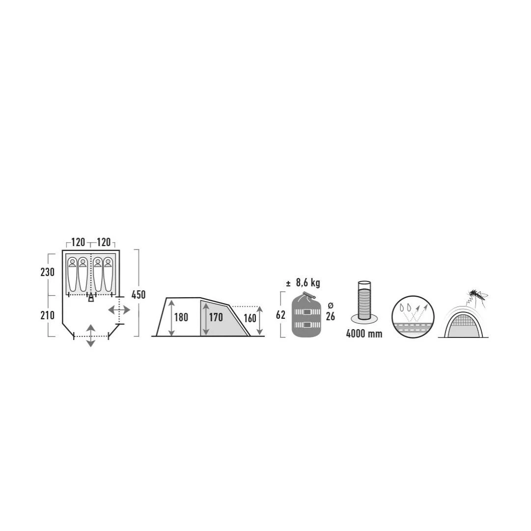 - Extra großer Abstand zwischen Außen- und Innenzelt für optimale Luftzirkulation