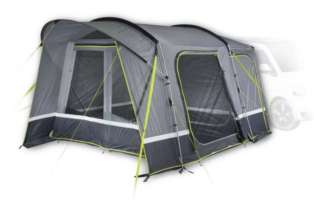 Das High Preak Riva 2.0 Busvorzelt ist ein freistehendes Kuppelzelt, in dem bis zu 2 Personen Platz finden. Die freistehende Funktion eignet sich besonders gut, wenn Du mit Deinem Bus einen Ausflug machen möchtest. Dafür muss es dann nicht extra abgebaut und weggepackt werden. In das Innere des Zeltes gelangst Du durch den überdachten Haupteingang oder dem mit Mesh ausgestatteten Seiteneingang. Das Riva 2.0 hat durch die Steilwand mit Rundbogendach eine optimale Raumnutzung. Für noch mehr Komfort kannst Du ein Innenzelt dazu bestellen, welches Du als Schlafkabine nutzen kannst. Durch sein Klarsichtfolien-Fenster, sein großes Panorama-Fenster und einem Mesh-Fenster ist das Zelt angenehm hell. Bei Bedarf können diese Fenster aber auch mit der Vario Reißverschluss-Abdeckung geschlossen werden. Für eine angenehme Luftzirkulation im Zelt sorgt die Hochentlüftung. Wenn Du bei gutem Wetter gern ein luftiges Vorzelt haben möchtest, kannst Du auch Veranda Front offenhalten und wie auf einer überdachten Veranda im Grünen sitzen. Zu den weiteren Ausstattungsmerkmalen des Riva 2.0 gehören eine aufrollbare Schleuse, vier Sicherheits-Sturmbänder, eine verschließbare, teilbare 50/50 Rückwand mit Easy Stow Away Tasche, ein Packsack, drei Klettbandschlaufen für die Dachreling und ein Hohlraum-Schleusenstab.