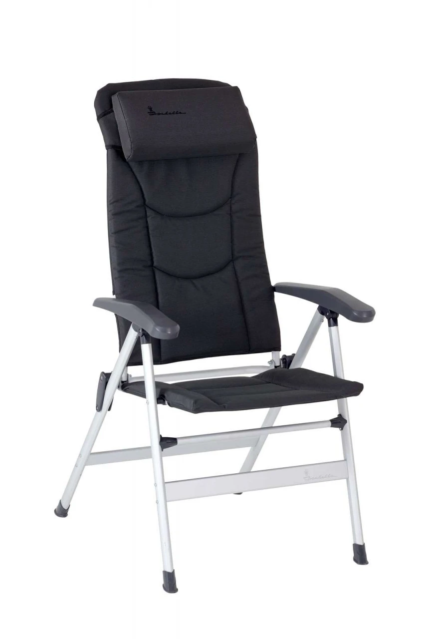 Der Isabella Thor Klappstuhl ist ein wasserabweisender, gepolsterter und stabiler Aluminium Campingstuhl. Zum Campingstuhl gehört serienmäßig ein Nackenpolster hinzu. Seine Rückenlehne ist 8-fach verstellbar und kann nach Deinen individuellen Bedürfnissen eingestellt werden. Darüber hinaus weist der Thor durch seinen gepolsterten Bezug einen besonders hohen Sitzkomfort auf. Der Stuhl ist bis 120 Kilogramm belastbar. Eine optionale Fußstütze ist erhältlich.