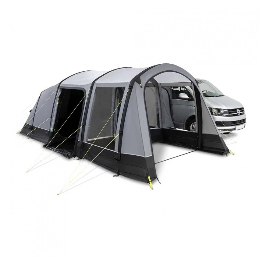 Dieses Set ist bestehend aus dem Kampa Touring AIR RH Busvorzelt, dem Twin Driveaway Kit und der passenden Zeltunterlage.