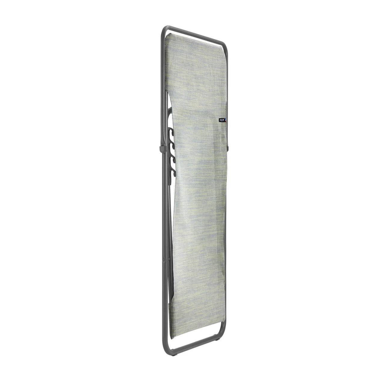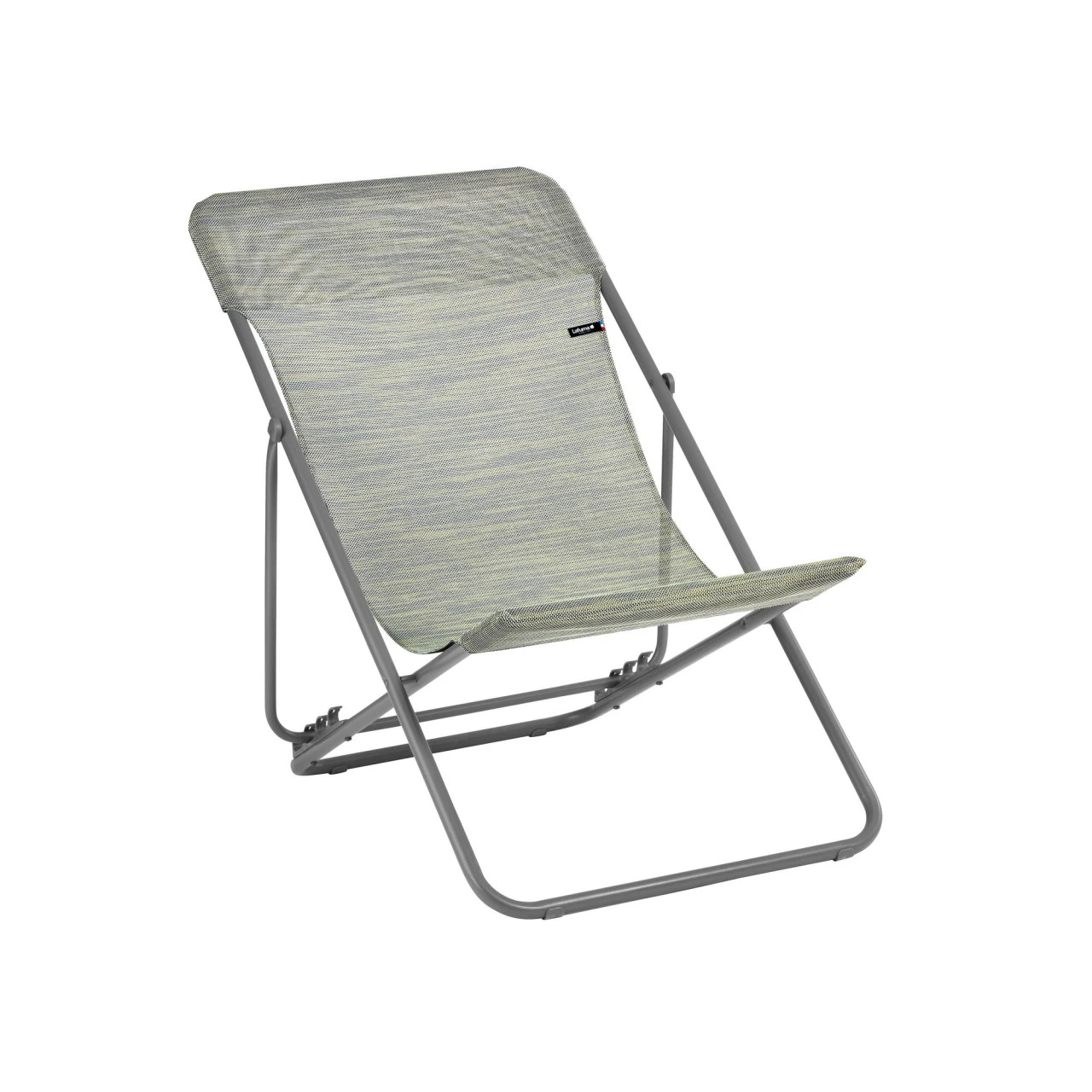 Der trendige Lafuma Maxi Transat Velio® Néo Liegestuhl, kommt in neuen Farben und lackierten Rohren. Er hat einen sehr breiten Rahmen und ein sehr kleines Packmaß. Mit Diesem Liegestuhl kannst Du gemütliche Stunden beim Grillen genießen. Der Maxi Transat Velio® Néo lässt sich in vier Positionen und nach Deinen individuellen Bedürfnissen einstellen. Für eine leichte Reinigung des Stuhls lässt sich einfach der Bezug abnehmen.