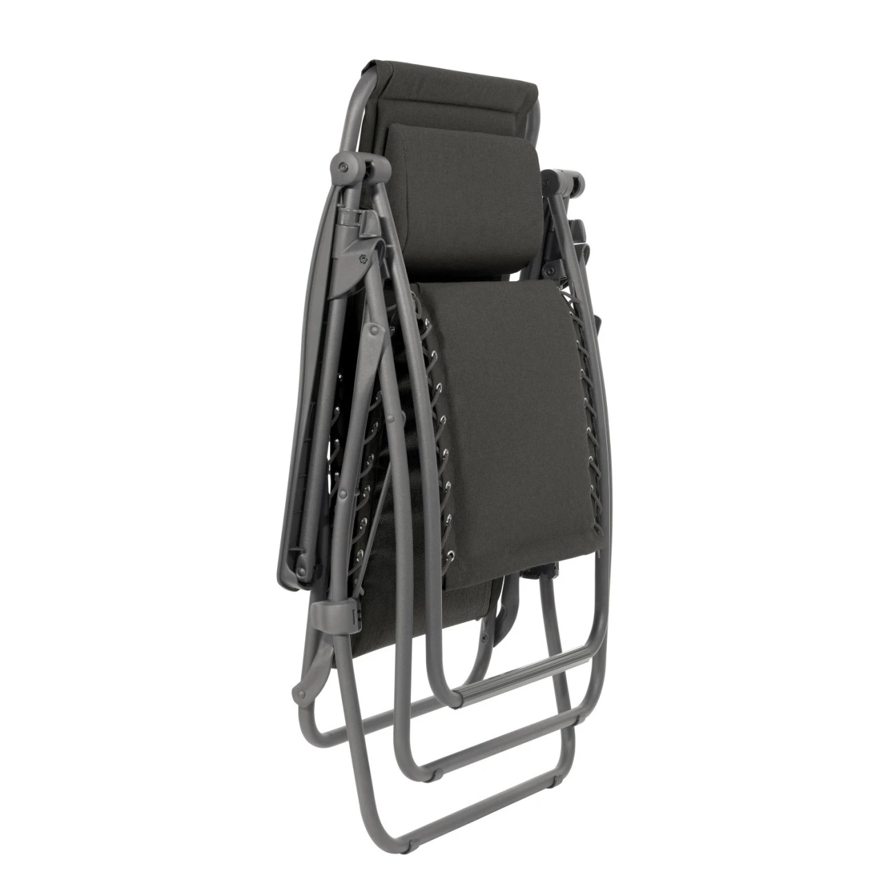 Der lafuma RSX Polycoton Relaxsessel überzeugt in Optik und Funktion. Die Position ist durch die Armlehnen, die ein optischer Hingucker durch ihr gekörntes Harz-Reliefmuster sind, stufenlos verstellbar, sodass du deine perfekte Positon problemlos finden kannst. Die Position wird durch eine Feststellbremse gehalten und du kannst dich bequem hinlegen ohne Angst haben zu müssen das die Positon verrutscht. Das ergonomische, verstellbare und abnehmbare Kopfpolster sorgt dafür, dass dein Kopf weich liegt und du keine Nackenschmerzen bekommst. Die lafuma RSX Polycoton Relaxsessel wurde mit einem abnehmbaren Bezug ausgestattet welcher durch elastische, austauschbare Gummischnüre an dem Rahmen aus lackierten Stahlrohren mit Ø 20 mm gehalten wird.