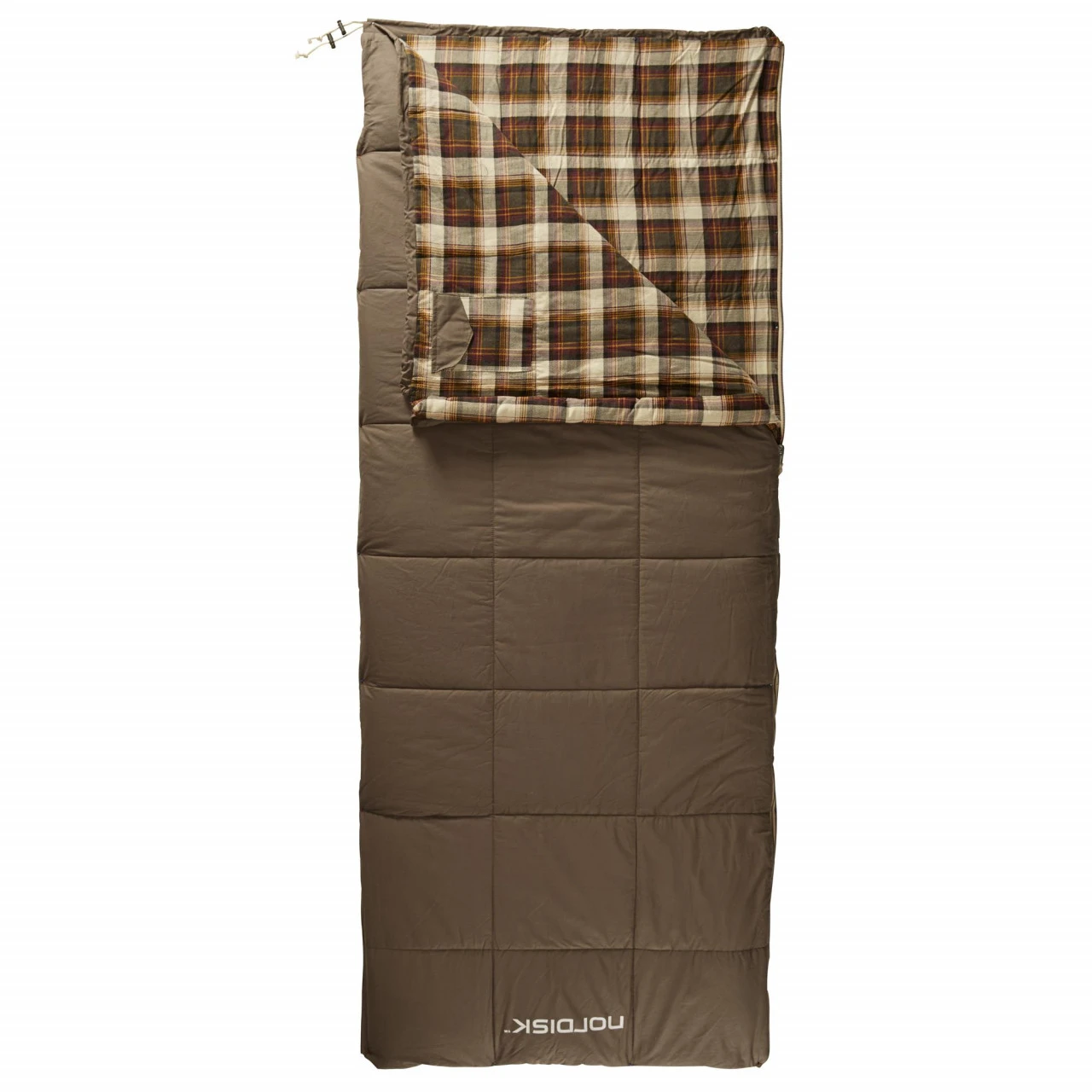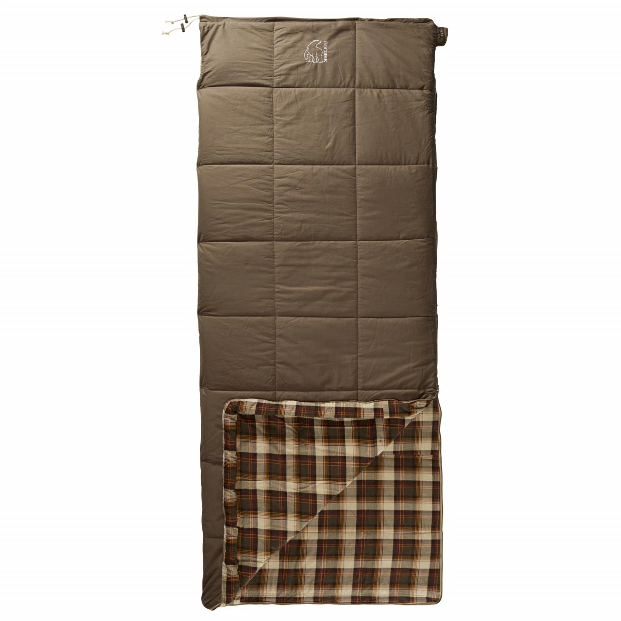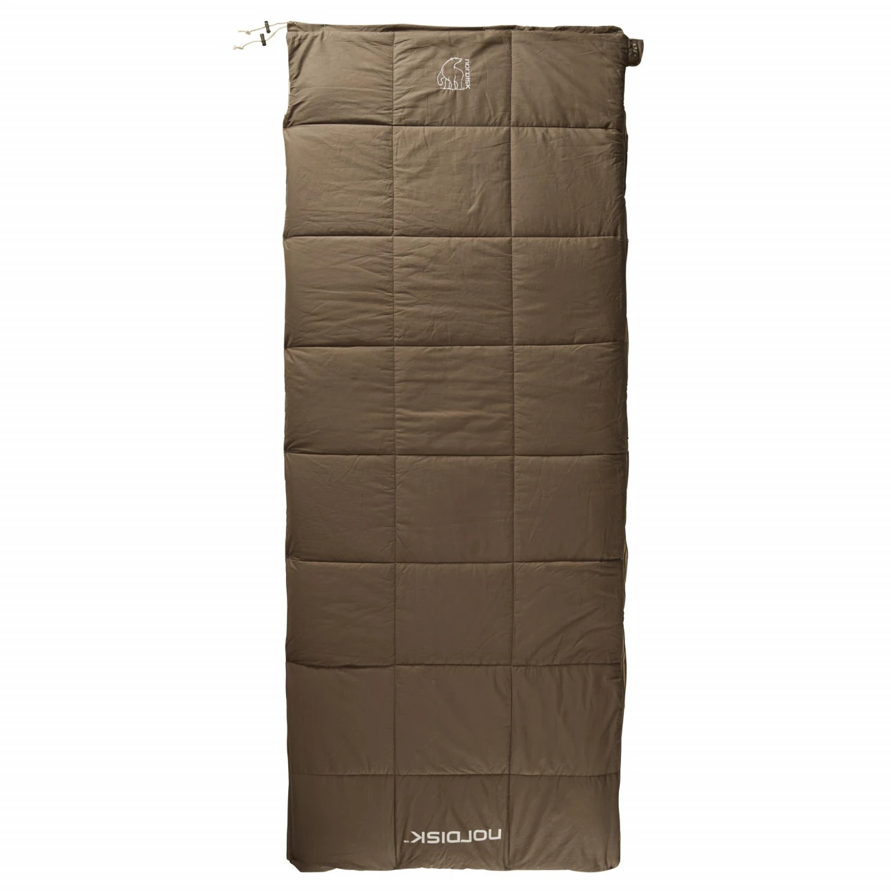 Der Nordisk Almond +10 L Deckenschlafsack kann ringsum geöffnet und so als Decke verwendet werden. Hauptmaterial ist Baumwolle. Innen ist der Almond aus weicher Flannel-Baumwolle. Die Zwei-Lagen-Konstruktion hält angenehm warm und verhindert Kältebrücken.
