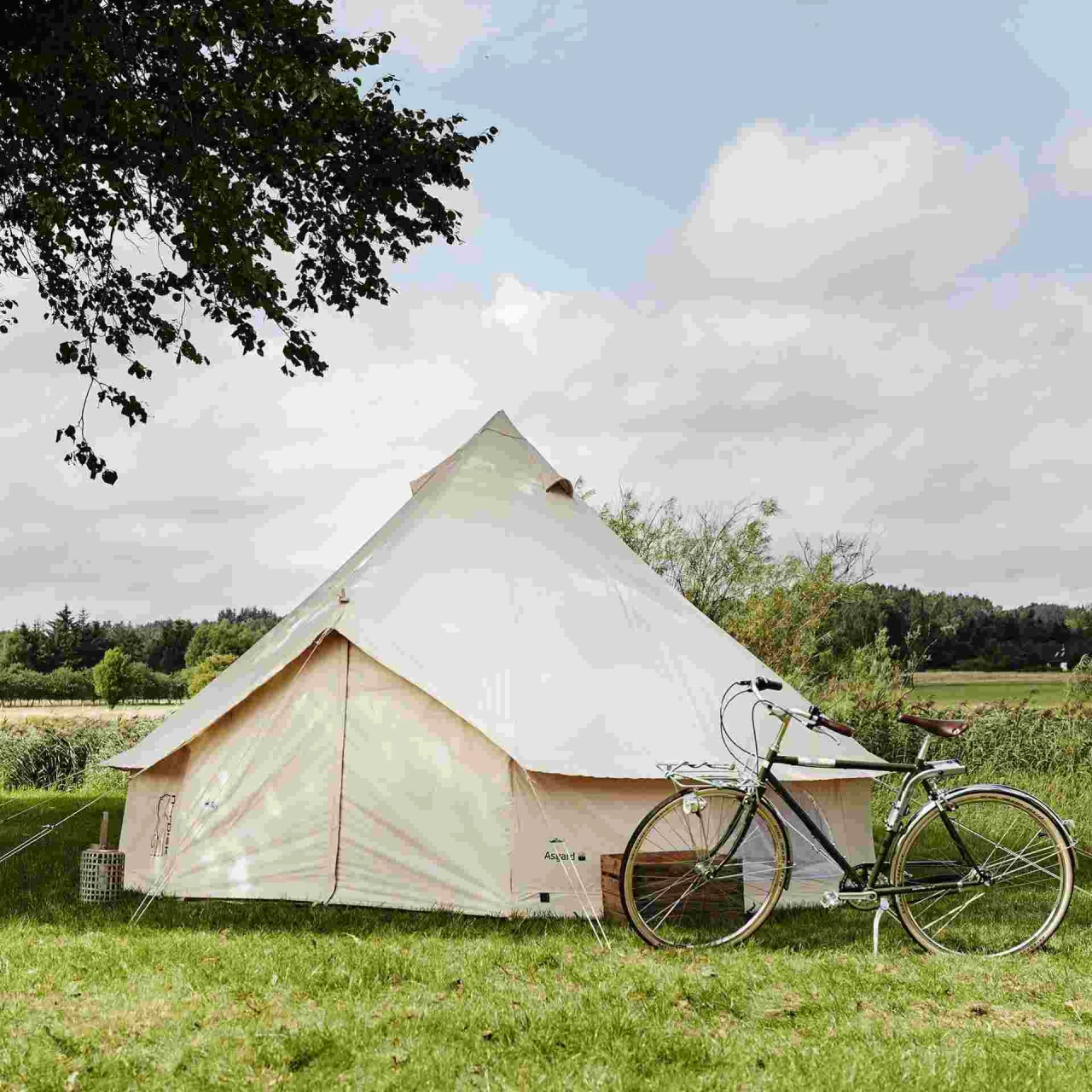 Eine passende Schlafkabine, welche eine Vorhalle an der Vorderseite des Zeltes schafft, kann optional dazubestellt werden. Alle Ausgänge und Fenster sind mit Mesh für optimale Belüftung ausgestattet. An allen Seiten befinden sich Sockelleisten, mit denen die Stabilität des Zeltes geschaffen werden kann.