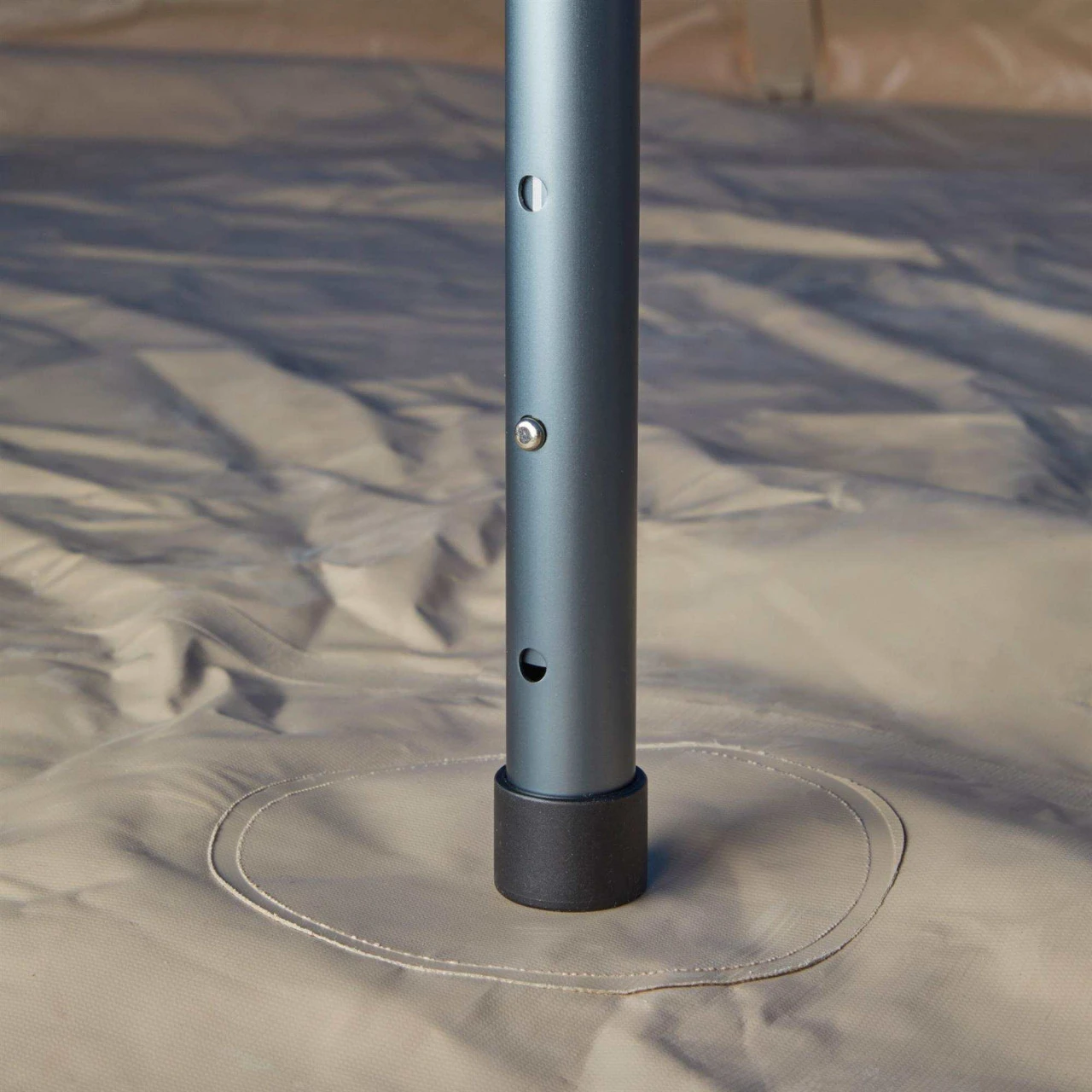 Das Nordisk Asgard 7.1 Denim Familienzelt ist das erste Basic Zelt, welches im Denim-Design gehalten ist. In dem klassischen Glockenzelt finden zwei bis drei Personen Platz. Durch die große A-Tür gelangst Du in das Innere des Zeltes. Darüber hinaus schützt die große Tür besonders gut vor Regen. Sie ist außerdem mit einem Moskitonetz für die optimale Belüftung und das Fernhalten der Moskitos ausgestattet. Das Moskitonetz kann bei Bedarf zur Seite gerollt werden. Im Inneren des Zeltes hast Du die volle Stehhöhe und einen eingenähten Zeltboden. Die Höhe des Zeltes kann durch die verstellbare Gestängehöhe nach Deinen Wünschen angepasst und verstellt werden. Des Weiteren verfügt das Asgard 7.1 Denim über D-förmigen Fenster. Diese sind mit dem Boden verbunden und können mit einem Reißverschluss geöffnet werden. Zusätzlich sind sie auch mit einem Moskitonetz ausgestattet. Eine passende Schlafkabine, welche eine Vorhalle an der Vorderseite des Zeltes schafft, kann optional dazu bestellt werden. An allen Seiten befinden sich Sockelleisten, mit denen die Stabilität des Zeltes erhöht wird.