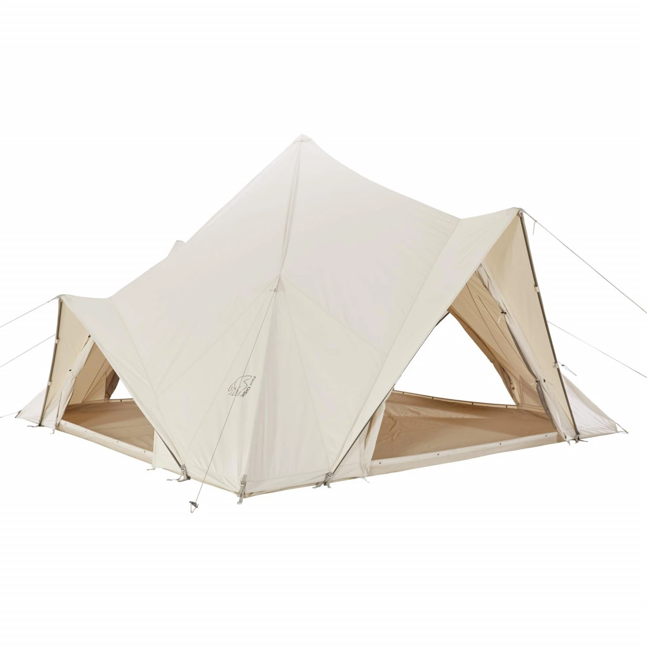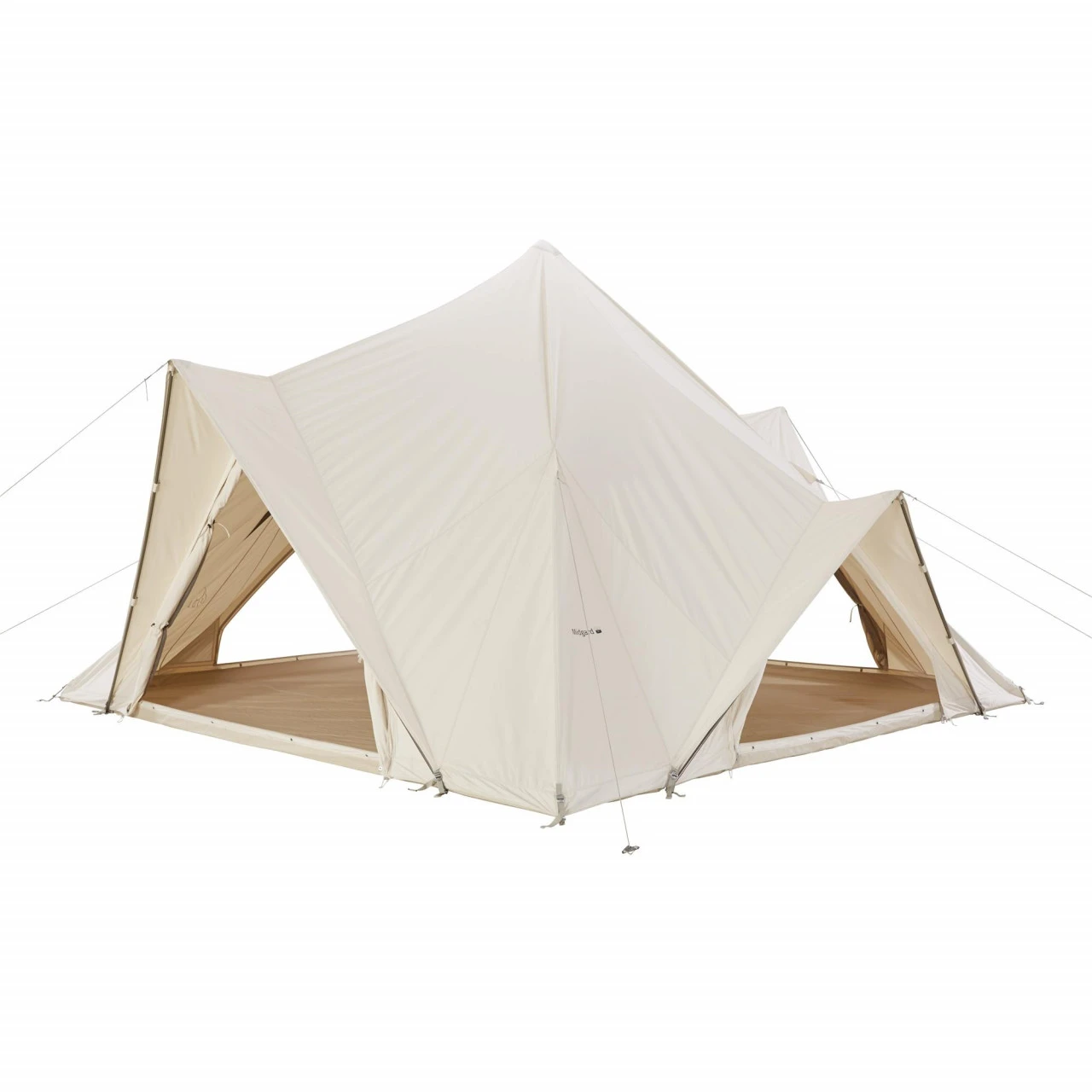 Das Nordisk Midgard 20 Gruppenzelt ist ein stangenfreies Baumwoll-Mischgewebe Zelt, welches in einem innovativen Design gehalten ist. Es lässt sich schnell und leicht aufbauen. Im Zelt selbst finden bis zu 10 Personen problemlos Platz und der geräumige Wohnbereich dient gleichzeitig als Schlafbereich. In das Innere des Zeltes gelangst Du durch einen der beiden Eingänge. Im Inneren des Midgard 20 hast Du durch die 3 Meter Zelthöhe eine zentrale Stehöhe. Durch die Fenster und Türen kommt besonders viel Licht und Luft in das Zelt. Dies sorgt für ein helles und belüftetes Zeltklima. Darüber hinaus sind die Fenster und Türen mit Moskitonetzen ausgestattet, sodass keine Insekten hineinkommen können. Zu den weiteren Ausstattungsmerkmalen des Midgard 20 gehören unter anderem ein großes Vordach über dem Eingang, welches einen sicheren Zugang ins Innere gewährt, aber auch vor Witterungseinflüssen schützt und eine stangenfreie Optik, da es keine störende Mittelstange gibt. Außerdem lässt sich das Midgard 20 mit dem Vimur-Serie in der Größe und Fläche erweitern.