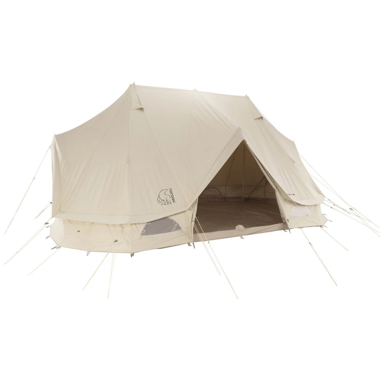 Die Sockelleisten schenken dem Zelt eine zusätzliche Stabilität. Ein optional erhältlicher Zip-In-Boden kann zu dem Nordisk Vanaheim 24 Basic Campingzelt separat erworben werden. Ebenso ist eine Zusatzkabine optional erhältlich: so können bis zu 16 Personen in dem Zelt bequem übernachten.