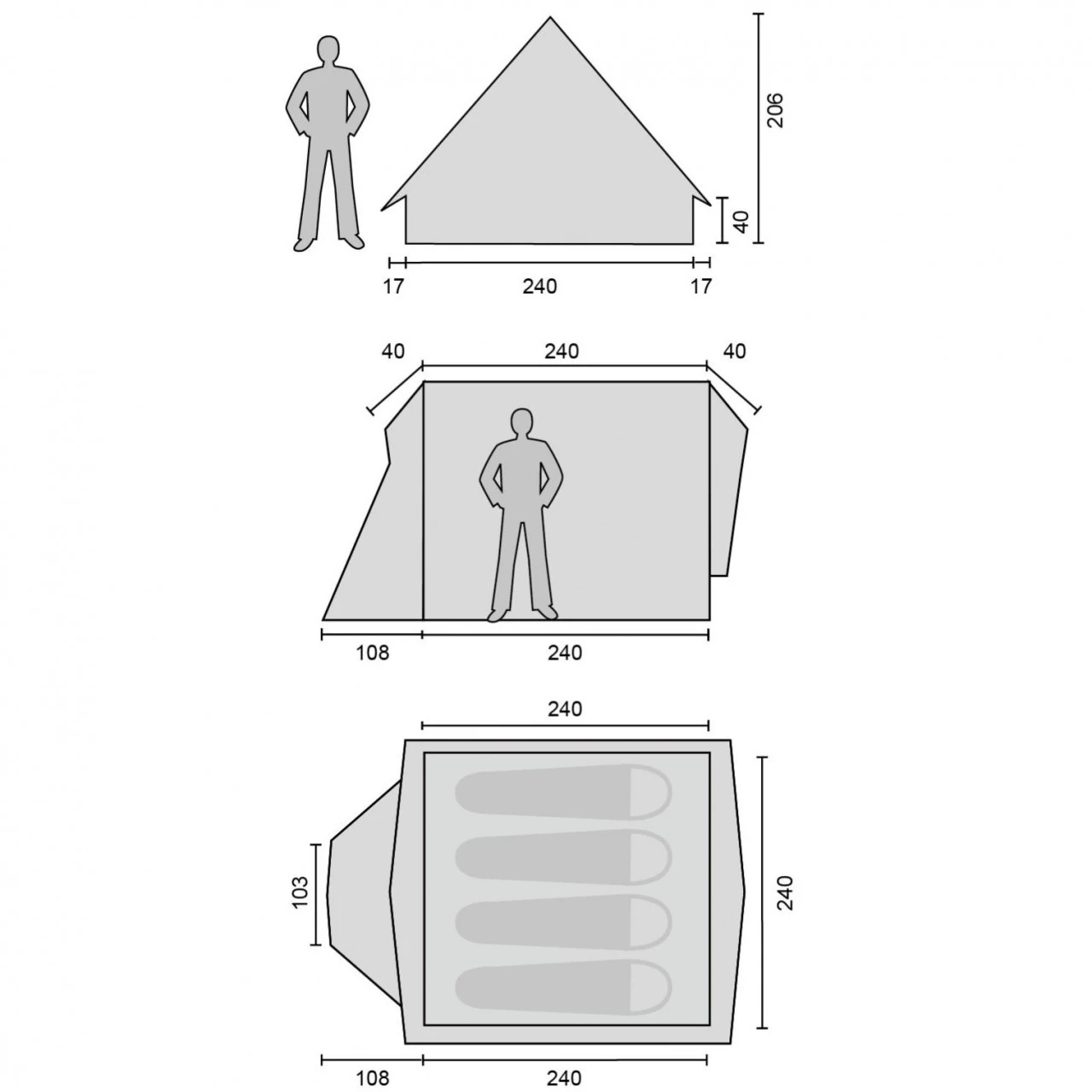 | Material- Zusammensetzung | Außenzelt: 65% Polyester, 35% Baumwolle |