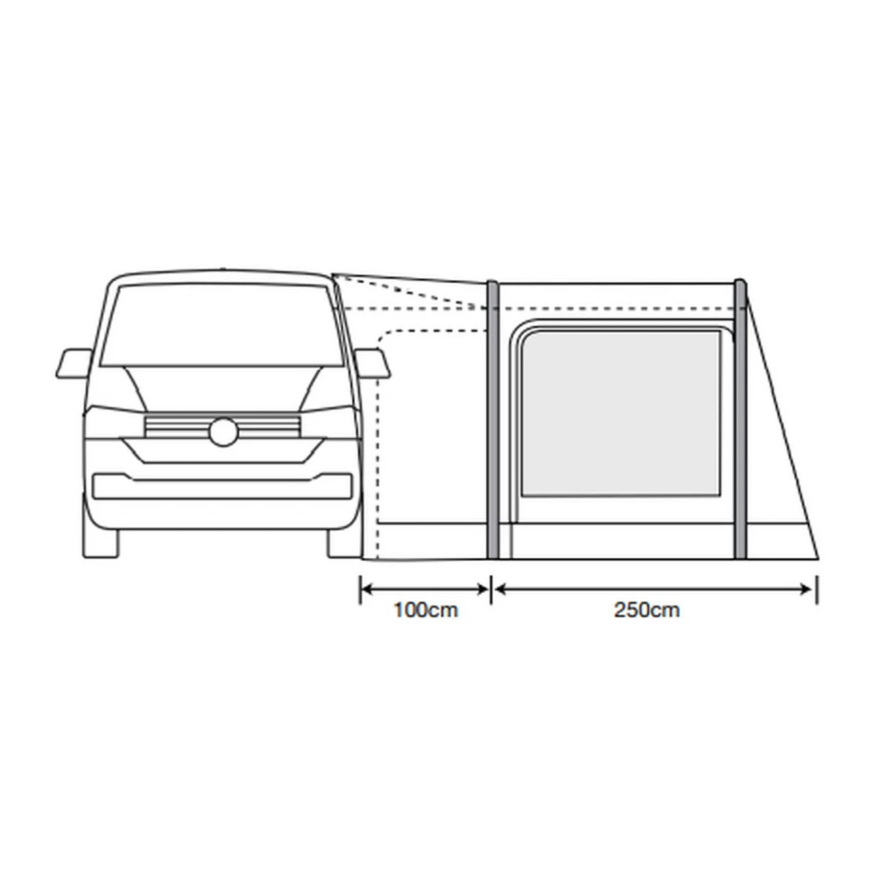 Kompakt und praktisch: Das Outdoor Revolution Movelite T2R Busvorzelt ist ein freistehendes Luftvorzelt aus einem leichten dennoch strapazierfähigen Polyestermaterial. Sowohl der Auf- als auch Abbau geht schnell von der Hand, da nur zwei Luftschläuche aufgeblasen oder entleert werden müssen. Die Front- und Seitentür sind jeweils mit einem Moskitonetz ausgestattet, sodass du eine optimale Belüftung erzielst und gleichzeitig lästige Insekten fernhältst. Die großen getönten Fenster bieten dir einen hervorragenden Blick auf deine Umgebung. Für mehr Privatsphäre kannst du die Fenster auch einfach mit den Reißverschlussvorhängen verschließen. Die Schleuse des Outdoor Revolution Movelite T2R Busvorzelt verfügt über eine Tiefe von 100 cm und zwei Türen. So hast du bei Bedarf zusätzlichen Stauraum und kannst bei schlechtem Wetter auch durch die Schleuse ins Vorzelt gelangen, ohne das Zelt unnötig zu verschmutzen.