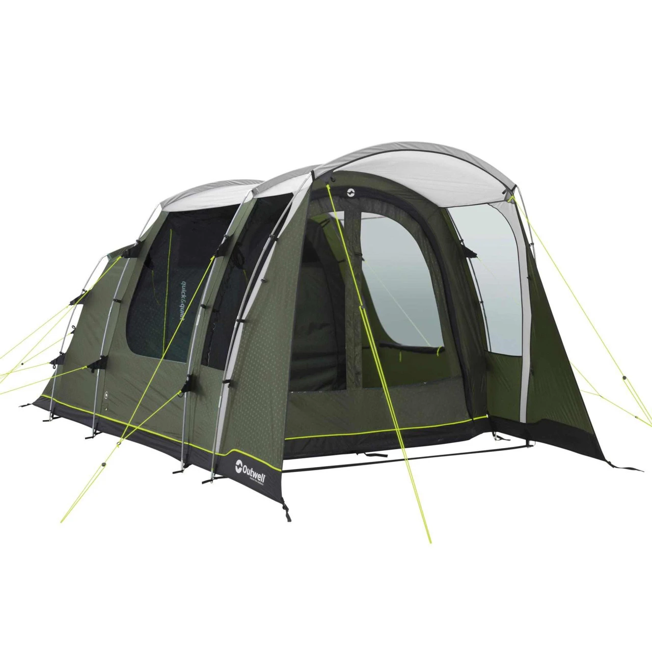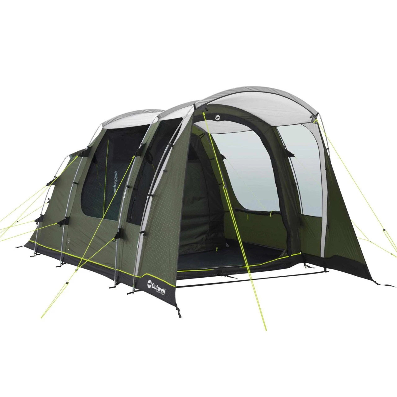 Das Outwell Ashwood 3 Familienzelt wurde speziell für Paare entwickelt, die gern Kurzurlaube mit dem Zelt unternehmen. Mit dem ummantelten Duratec-Fiberglasgestänge, der vollen Stehhöhe, der optimalen, vielseitigen Belüftung sowie den 2 patentierten Quick & Quiet Magnettüren steht einem komfortablen Campingerlebnis nichts mehr im Weg. Hinter der Vorderwand mit Seitenfenster und großem Vordach gelangst du durch die neue, patentierte Quick & Quiet Mesh Tür mit Magnetverschluss in dein Zelt. Wenn du die Magnetfunktion nicht nutzen möchtest, kannst du die Front mit einem doppelten Reißverschluss komplett öffnen. Das eingearbeitete Moskitonetz ermöglicht eine Belüftung, ohne dass Insekten ins Zelt gelangen. Die abgedunkelte Premium Schlafkabine ist ebenfalls mit einer Quick & Quiet Tür versehen, so dass du die Kabine geräuschlos öffnen und verlassen kannst. Für eine optimale Belüftung der Schlafkabine des Ashwood 3 von Outwell sorgt das „Rear Ventilation System“. Eine spezielle, variable Belüftung an der Zeltrückseite. Die Netztaschen im Innenzelt dienen zur Aufbewahrung kleinerer Gegenstände, die du schnell zur Hand haben willst. Die großen getönten Fenster reduzieren das Blenden bei starker Sonneneinstrahlung. Um dir mehr Privatsphäre zu gewährleisten, kannst du die Fenster mit Vorhängen auch komplett schließen.