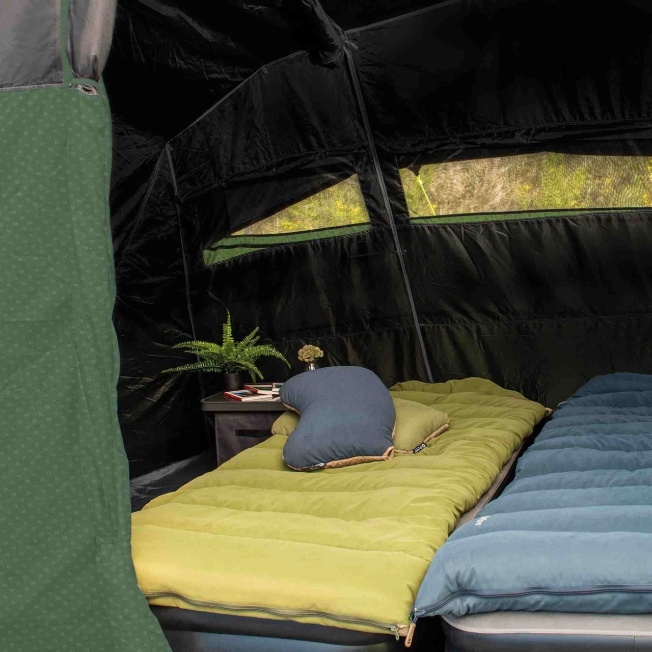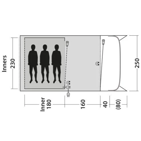 - Außenzelt und Innenzelt verfügen über Kabeldurchführungen