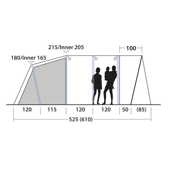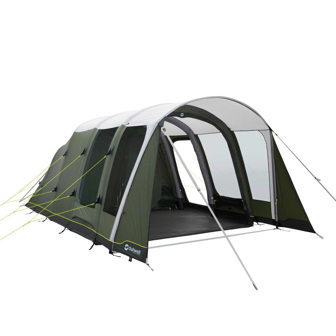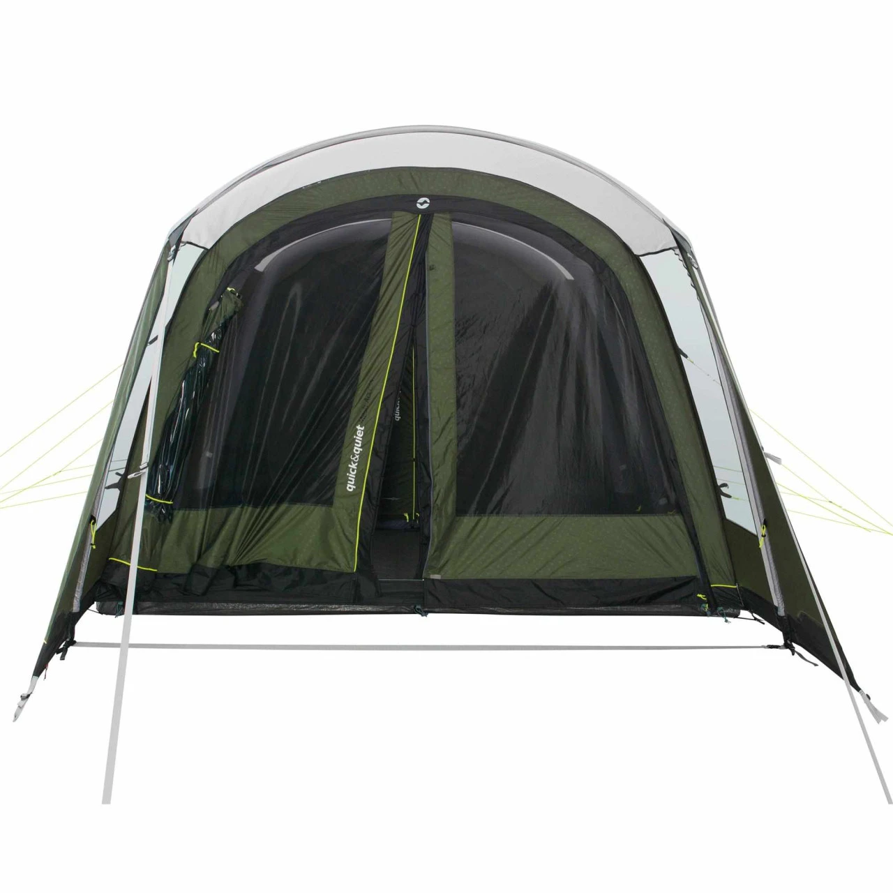 Das Outwell Avondale 4PA ist ein schönes Familienzelt für bis zu 4 Personen. Durch die einfach aufzublasenden Luftkanäle lässt es sich in wenigen Minuten ganz leicht für Camping-Neulinge und Profis aufzustellen. Das Vordach mit Fenstern in den Seitenwänden gewährt Schutz vor Sonne oder Regen. Die vorderen Paneele auf beiden Seiten können komplett zur Seite gerollt werden. Der große Haupteingang zum Outwell Avondale 4PA hat die patentierte Quick & Quiet Tür mit Moskitonetz bekommen. Damit kannst du den Eingang noch mehr nach deinen Wünschen gestalten – du kannst die Magnettür-Funktion nutzen oder den Eingang halb bzw. komplett öffnen. Ein weiterer Pluspunkt ist der separate Seiteneingang. Die Premium-Schlafkabine ist aus einem dunklen Material gefertigt, was für einen erholsamen Schlaf sorgt. Du kannst die Schlafkabine ganz einfach mit einem Reißverschlussvorhang in 2 separate Kabinen teilen. Durch die Magnetfunktion der Quick & Quiet Tür kannst du das Innenzelt nahezu geräuschlos betreten oder verlassen. Möchtest du die Tür komplett verschließen, ist das auch kein Problem, denn ein Reißverschluss ist ebenfalls vorhanden. Die getönten Fenster lassen sich mit Vorhängen in verschiedenen Positionen schließen. Auf der Rückseite des Avondale 4PA befindet sich über die gesamte Breite eine Ventilation, die entweder komplett geöffnet werden kann oder mit Abstandshaltern so aufgestellt, dass auch bei schlechtem Wetter frische Luft ins Zelt kommt. Sollte es nachts doch zu kalt werden, kann die Belüftung auch komplett geschlossen werden.