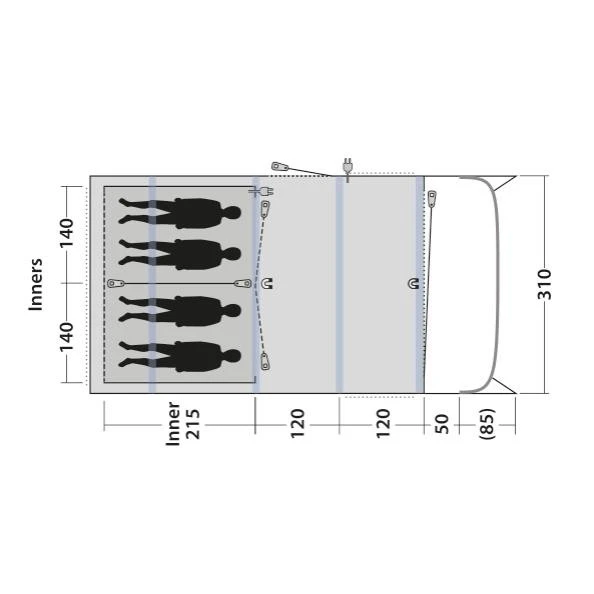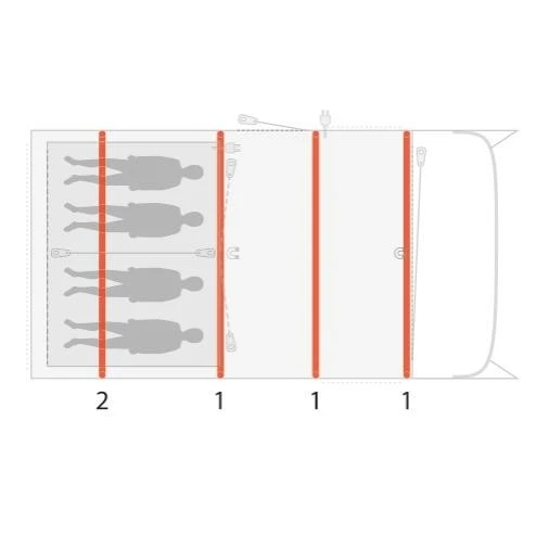 - Kabeldurchführungen ins Hauptzelt sowie in die Schlafkabine
