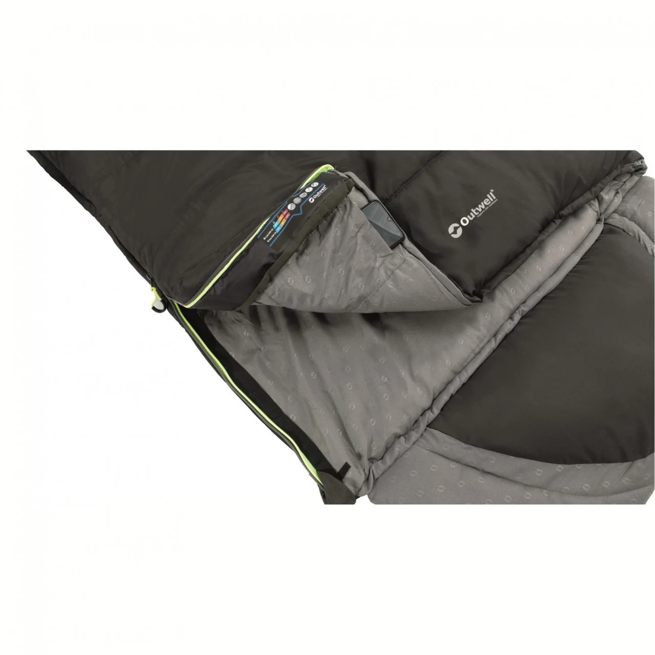 Der Outwell Contour Midnight Black Kunstfaserschlafsack ist Dein perfekter Schlafsack für zwei Jahreszeiten. Er kann gewendet werden und passt sich so den unterschiedlichen Temperaturen an. Das integrierte Kissen und die Kapuze mit Reißverschluss für kältere Nächte sorgen dafür, dass Du jede Nacht gut schlafen kannst. Sollte Dir der Schlafsack zu warm sein, kannst Du mittels des Reißverschlusses die Temperatur im Schlafsack regulieren. Außerdem kannst Du den Schlafsack aufschlagen und auch als Decke verwenden. Mittels des Reißverschlusses kannst Du den Schlafsack auch mit einem anderen zu einem großen verbinden. Zu den weitere Ausstattungsmerkmalen des Contour Midnight Black gehören ein leicht zu öffnender und schließender Reißverschluss sowie eine dazugehörige Abdeckung. Außerdem verfügt der Schlafsack über Befestigungsschlaufen in den Ecken für den Innenbezug.