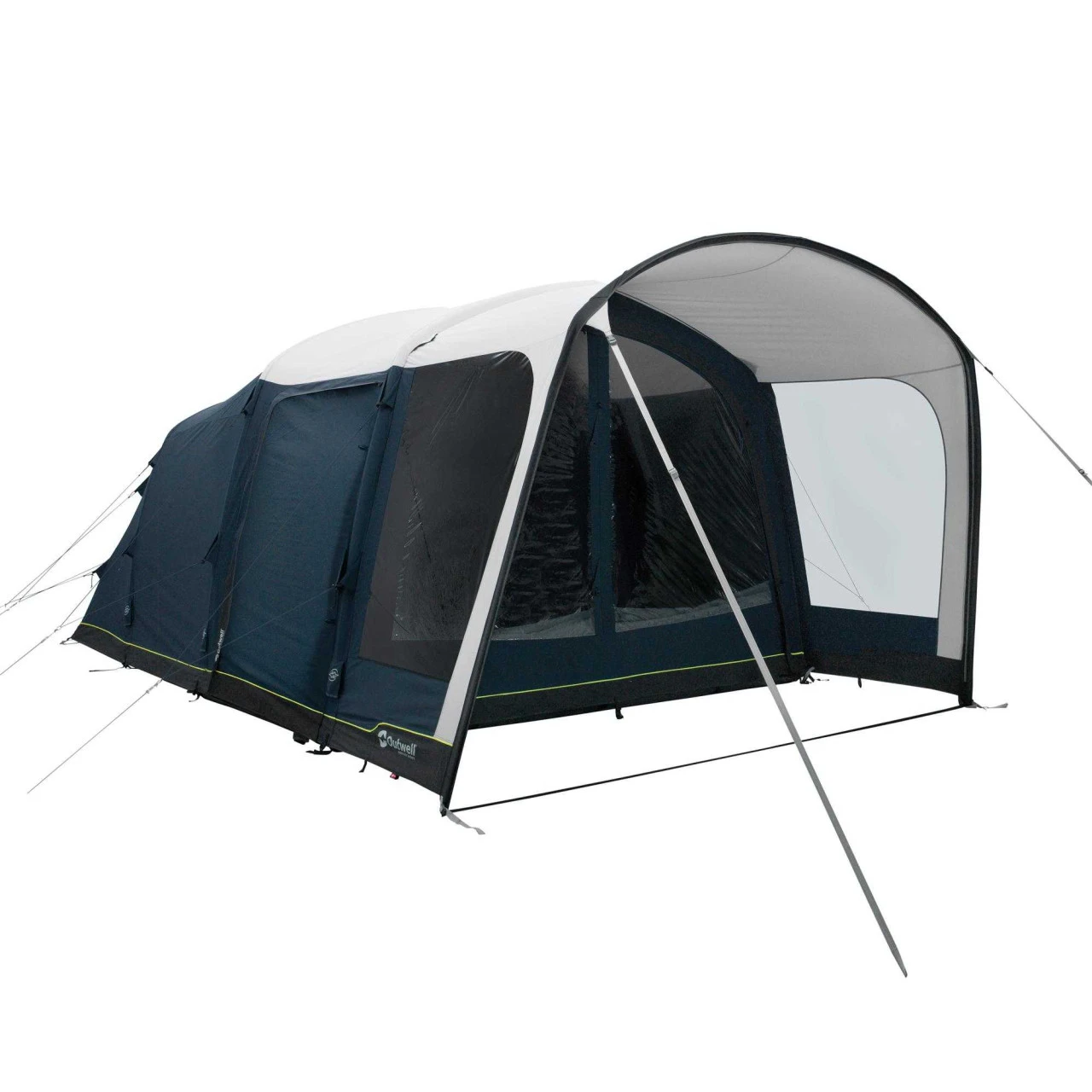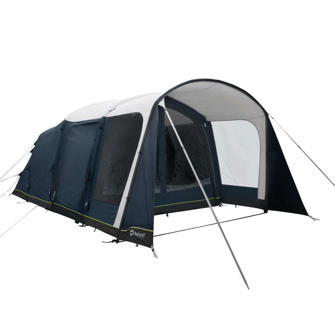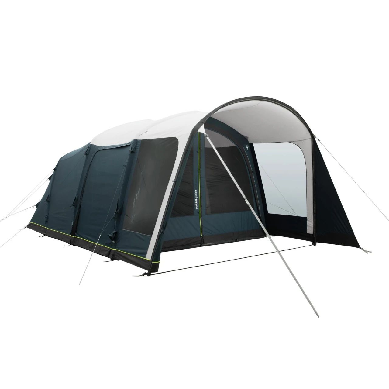 Das großzügig geschnittene Outwell Hayward Lake 4ATC Familienzelt aus Baumwollmischgewebe bietet einen außergewöhnlichen Komfort für deinen Campingurlaub. Innerhalb weniger Minuten ist es durch die Luftkanäle ganz einfach aufgebaut. Das große Vorzelt mit Fenstern in den Seitenwänden, zurückrollbaren Paneelen und großem Vordach vergrößert den Wohnbereich und bietet gleichzeitig Schutz vor Regen. Eine absolute Neuheit ist das Outwell Nightlight System (ONS). Am Eingang und im Wohnbereich ist in den Halteschläuchen für das HookTrack System eine Beleuchtung integriert. Mit dem optional erhältlichen ONS Light Unit Set kannst du das Licht per Fernbedienung in 3 Lichtstärken steuern. So findest du garantiert den Weg zu deinem Zelt, wenn du nachts zurück zum Campingplatz kommst. Der große Fronteingang hat die patentierte Quick & Quiet Mesh Door bekommen. Durch den Magnetverschluss kannst du dein Zelt geräuschlos betreten. Wenn du diese Funktion nicht nutzen willst, kannst du mit Hilfe der doppelten Reißverschlüsse die Front komplett öffnen. Das Moskitonetz hält dabei lästige Insekten fern. Die Quick & Quiet Door kann aber auch wie ein herkömmlicher Zelteingang komplett verschlossen werden. Zwei separate Seiteneingänge mit Moskitonetzen sorgen für eine rundum Belüftung. Die Rear Ventilation hinter der Schlafkabine kann individuell eingestellt werden.