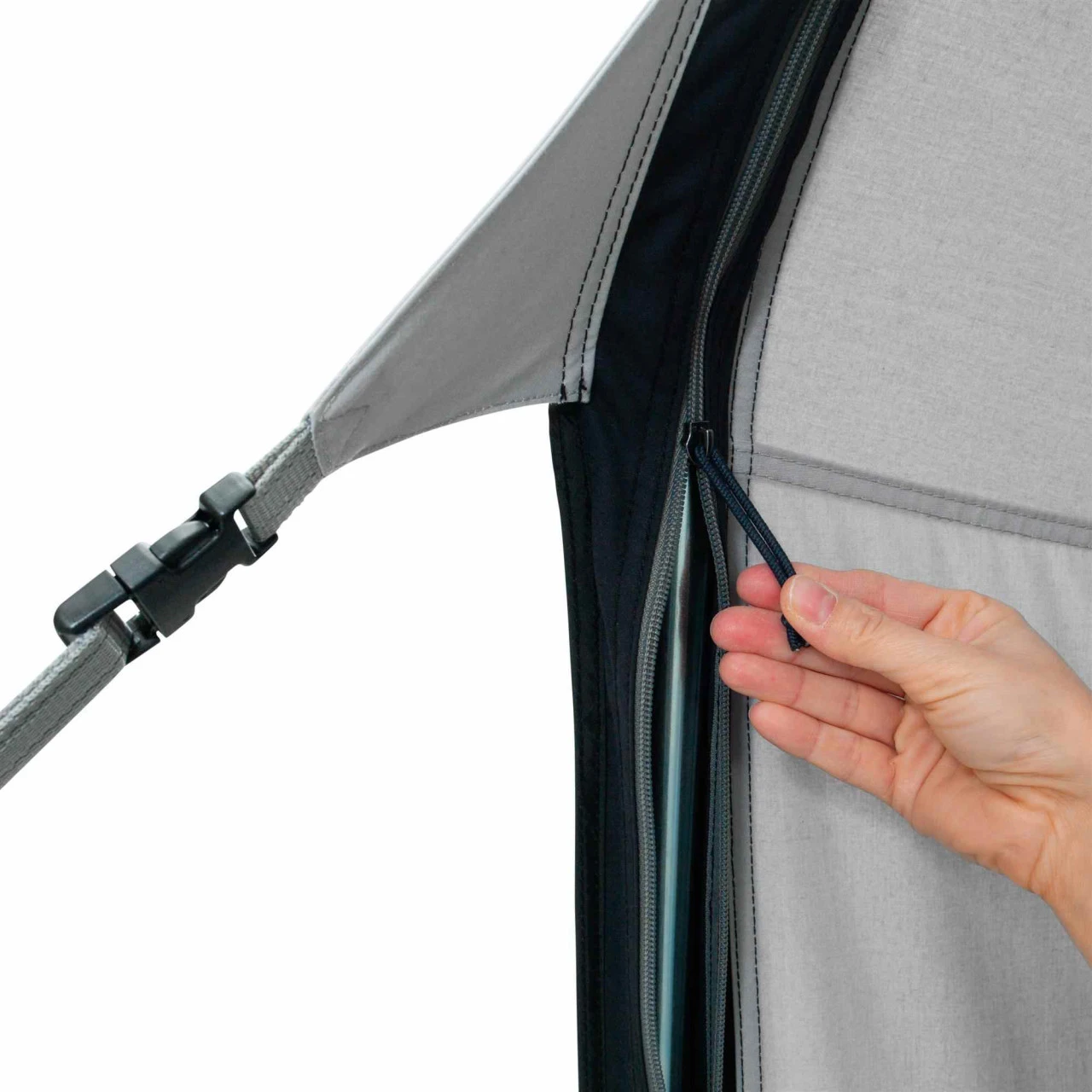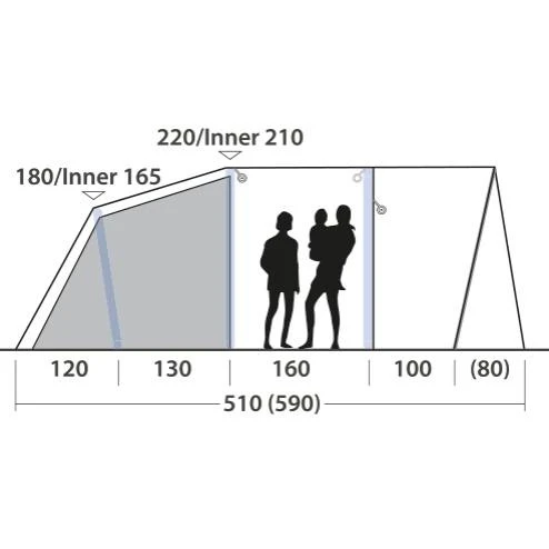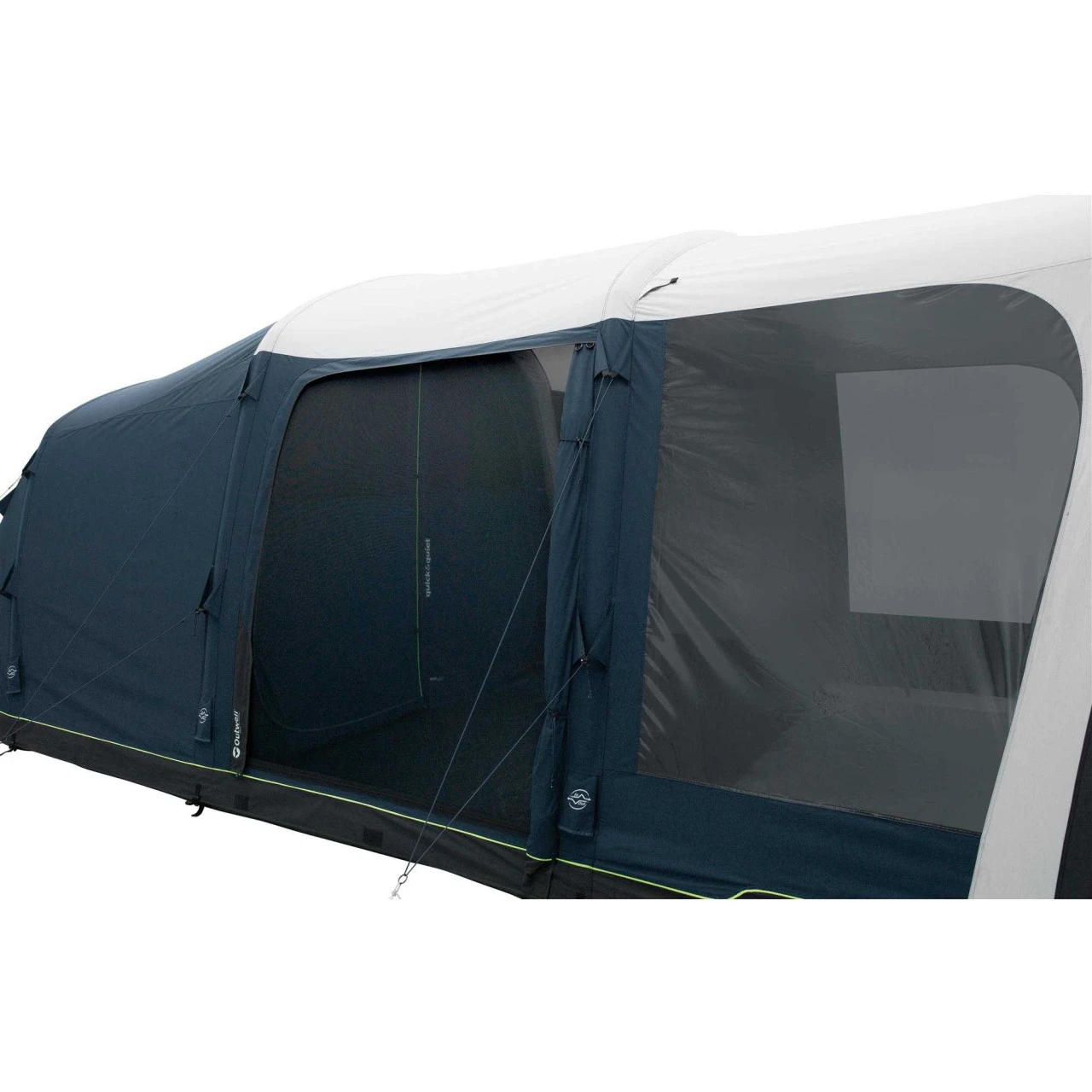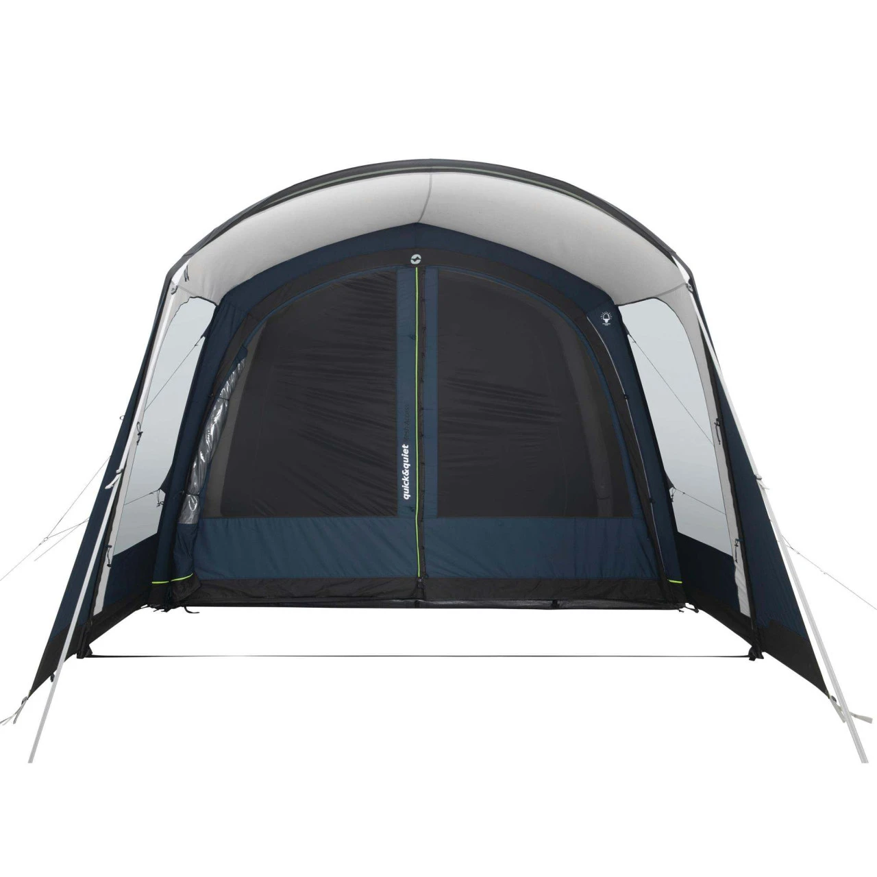 Das großzügig geschnittene Outwell Hayward Lake 4ATC Familienzelt aus Baumwollmischgewebe bietet einen außergewöhnlichen Komfort für deinen Campingurlaub. Innerhalb weniger Minuten ist es durch die Luftkanäle ganz einfach aufgebaut. Das große Vorzelt mit Fenstern in den Seitenwänden, zurückrollbaren Paneelen und großem Vordach vergrößert den Wohnbereich und bietet gleichzeitig Schutz vor Regen. Eine absolute Neuheit ist das Outwell Nightlight System (ONS). Am Eingang und im Wohnbereich ist in den Halteschläuchen für das HookTrack System eine Beleuchtung integriert. Mit dem optional erhältlichen ONS Light Unit Set kannst du das Licht per Fernbedienung in 3 Lichtstärken steuern. So findest du garantiert den Weg zu deinem Zelt, wenn du nachts zurück zum Campingplatz kommst. Der große Fronteingang hat die patentierte Quick & Quiet Mesh Door bekommen. Durch den Magnetverschluss kannst du dein Zelt geräuschlos betreten. Wenn du diese Funktion nicht nutzen willst, kannst du mit Hilfe der doppelten Reißverschlüsse die Front komplett öffnen. Das Moskitonetz hält dabei lästige Insekten fern. Die Quick & Quiet Door kann aber auch wie ein herkömmlicher Zelteingang komplett verschlossen werden. Zwei separate Seiteneingänge mit Moskitonetzen sorgen für eine rundum Belüftung. Die Rear Ventilation hinter der Schlafkabine kann individuell eingestellt werden.
