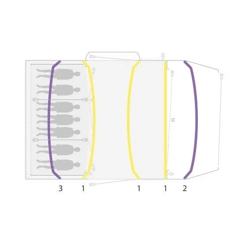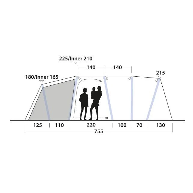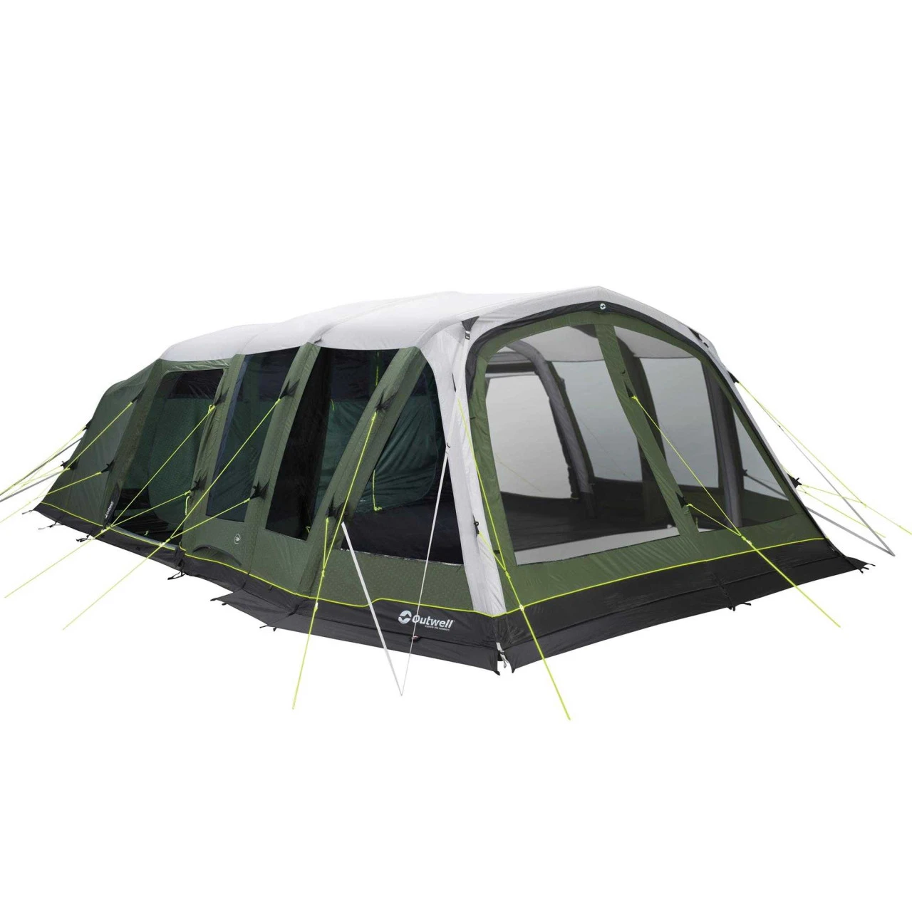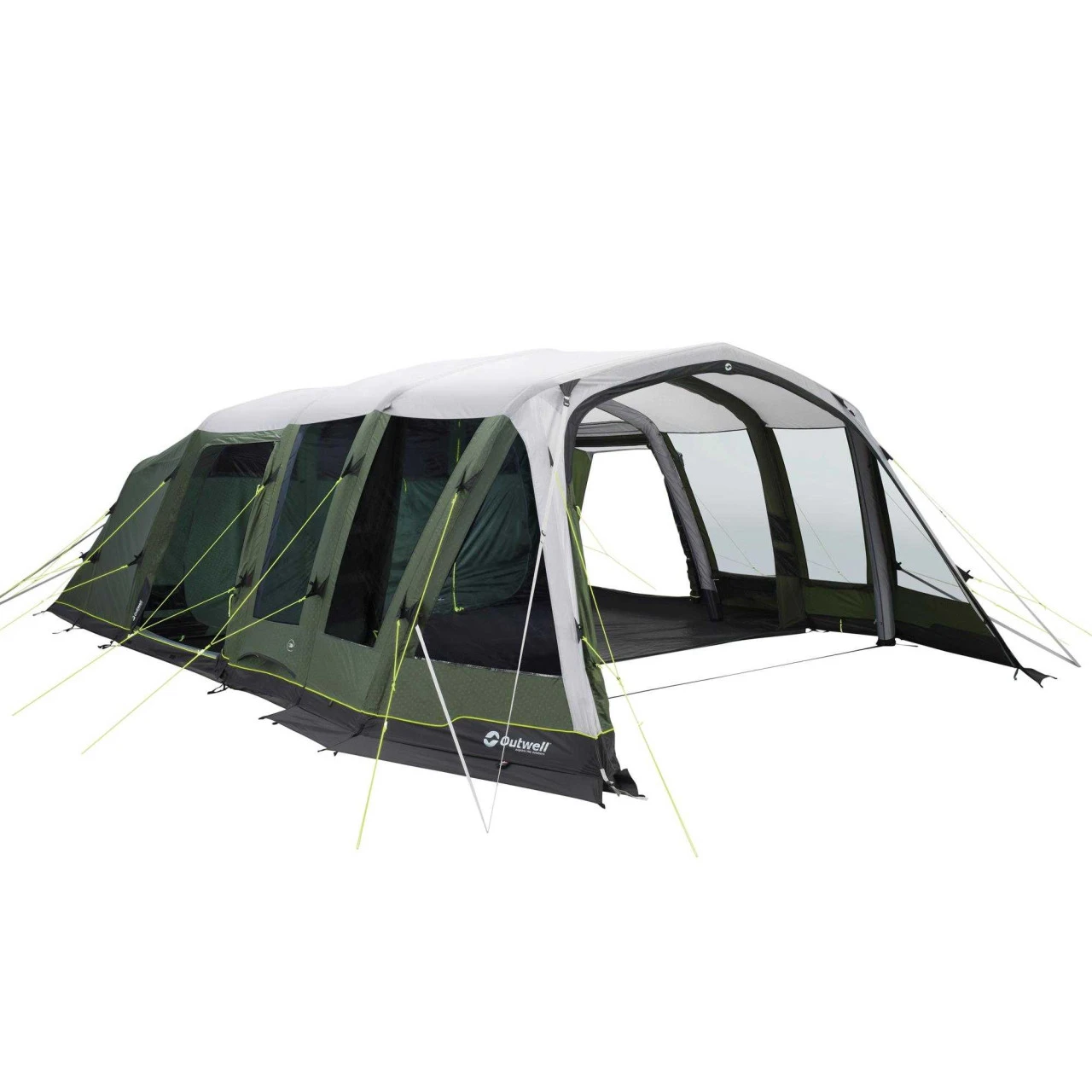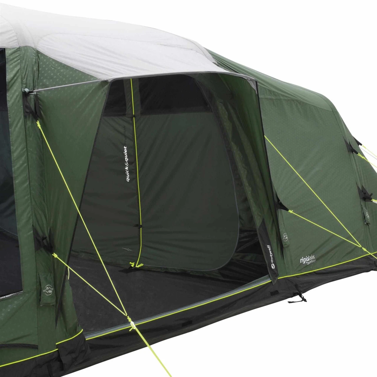 Das Outwell Jacksondale 7PA ist ein 3-Zonen-Zelt mit einem Schlafbereich, einem Wohnbereich und einem verschließbaren Nassbereich. Der vordere Bereich im Zelt kann komplett geöffnet werden und dient bei schönem Wetter z.B. als Küche. Wenn es länger regnet, kannst du den Nassbereich zu machen und erweiterst so den Wohnbereich. Durch die beiden separaten Seiteneingänge, von denen einer überdacht ist, gelangst du auch in den Wohnbereich. Der Zugang zum Nassbereich lässt sich durch die doppelten Reißverschlüsse vollständig öffnen.