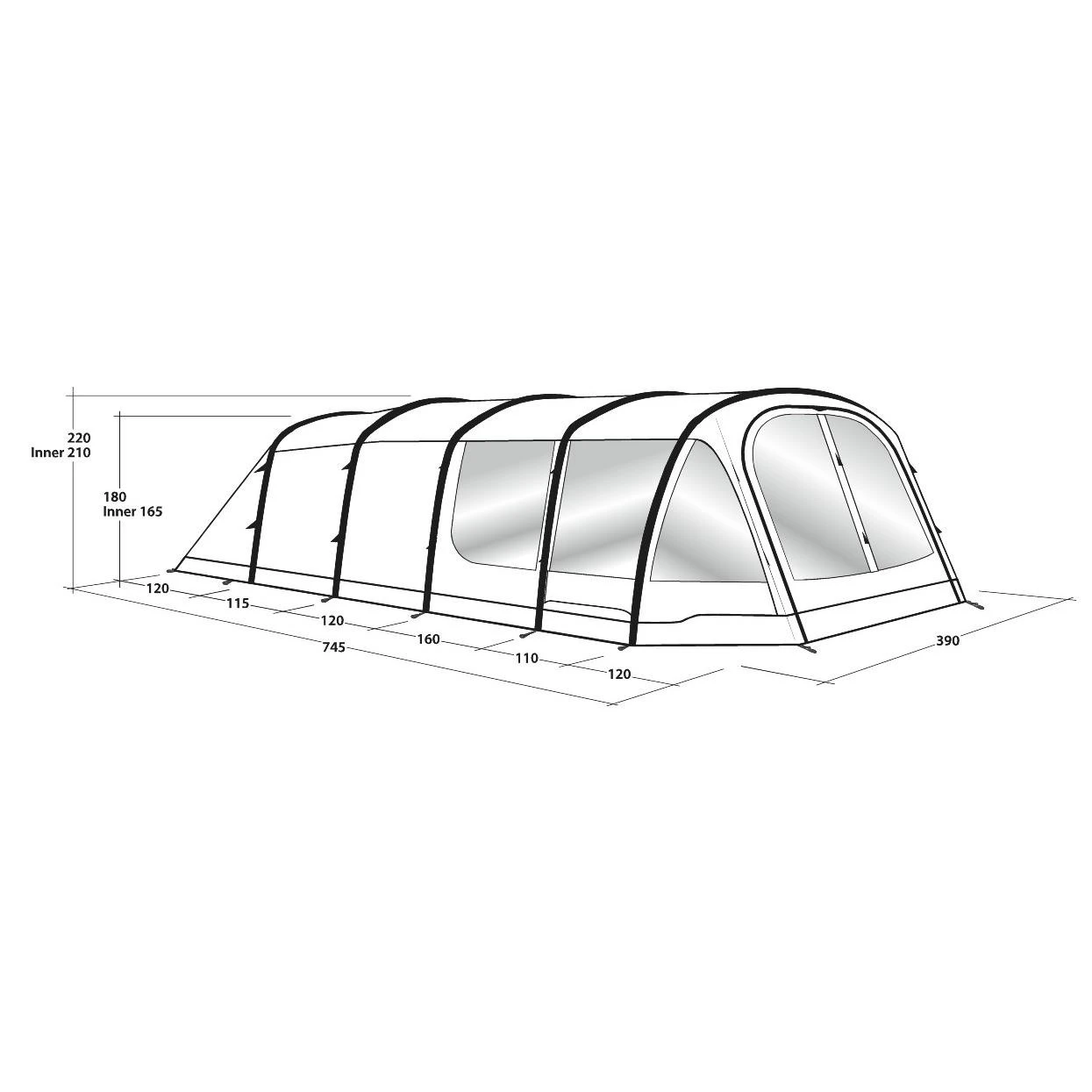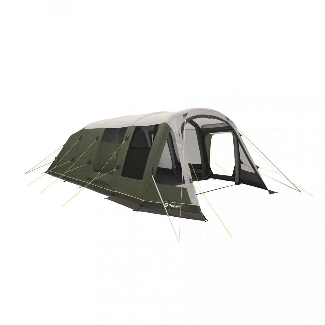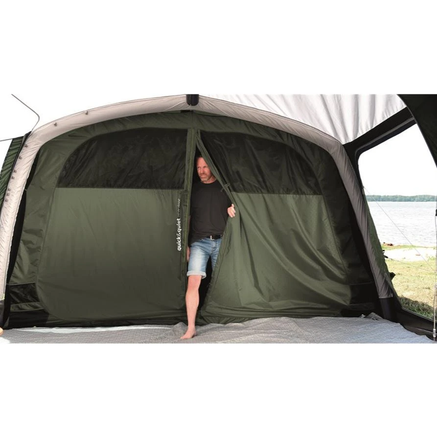 Das großzügig, luftige Outwell Knightdale 8PA Familienzelt ist Dein idealer Begleiter für Deine Abendteuer. Es lädt zum Verweilen und Entspannen mit bis zu 8 Personen ein. Es ist dank seines Rigid Air System innerhalb weniger Minuten aufgebaut. Vorgeformte Luftschläuche sorgen für eine hohe Deckenhöhe und einen geräumigen Innenraum. Das Zelt ist in drei Bereiche aufgeteilt: Einen Nassbereich und einen Wohn- und Schlafbereich. Die Fronttür kann mit Hilfe der doppelten Reißverschlüsse komplett geöffnet werden. Des Weiteren verfügt die Fronttür über den Quick and Quiet Magnetverschluss, mit dem Du in das Zelt geräuschlos eindringen, als es auch geräuschlos verlassen kannst. Neben der Fronttür verfügt das Zelt auch über eine zusätzliche Seitentür, mit der Du einen flexiblen Zugang ins Innere des Zeltes hast. Die großen, glasklaren Fenster bieten einen guten Ausblick auf Deine Umgebung und können bei Bedarf verschlossen werden. Damit Dein Zelt ein wenig wohnlicher wird, verfügt das Zelt über das HookTrackSystem. Dieses System bietet Dir vielseitige Möglichkeit Gegenstände oder Lampen aufzuhängen. Der Schlafbereich mit den zwei Premier-Schlafkabinen, in dem bis zu 6 Personen Platz finden, wurde mit abgedunkeltem Material und Lüftungsöffnungen aus Netzstoff ausgestattet, sodass Deine Nächte länger und ruhiger werden. Die Lüftungsöffnungen kannst Du bei Bedarf verschließen. Musst Du die Schlafkabine nachts mal verlassen, hilft Dir die Quick&Quiet-Tür dabei Deine Begleiter nicht aufzuwecken. Die Tür wurde mit einem Magnetband ausgestattet, welches ein fast geräuschloses Verlassen der Schlafkabine ermöglicht. Für eine optimale Belüftung sorgt das neue Hinterlüftungssystem. Diese kann sowohl bei geschlossenem als auch beim geöffneten Zelt benutzt werden. Eine dritte, zusätzliche Schlafkabine kannNassbereich eingerichtet werden. Diese kann allerdings auch als Stauraum genutzt werden.