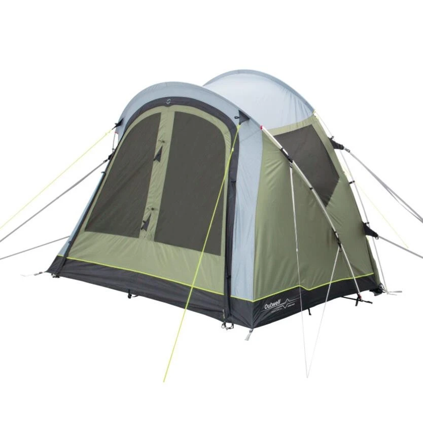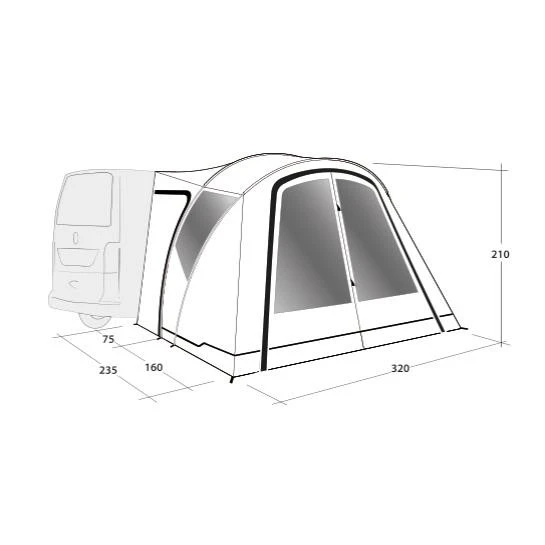 Das Outwell Lakecrest Busvorzelt ist ein großzügig geschnittenes Drive-away Busvorzelt mit flexiblen Aufbau-Optionen. Es lässt sich mithilfe von partiellen Stangenkanälen und Klemmen an Dein Fahrzeug mit einer Anschlusshöhe von 175 – 200 cm anbringen. Die Frontwand des Zeltes ist mit ist mit einem Zwei-Wege-Reißverschluss und einem Fenster mit Netzstoff mit getönten Scheiben ausgestattet. Der Vordereingang ist aufrollbar und ermöglicht Dir eine Panorama- Aussicht. Um ein wenig mehr Privatsphäre genießen zu können, können die großen, getönten Fenster problemlos mit den wasserdichten Zip-up-Vorhängen verschlossen werden. Die beiden gegenüberliegenden Seiteneingänge gewähren Dir einen einfachen Zugang zum Fahrzeug und über die Link-Access-Zone mit Bodenschürze eine angenehme Belüftung. Damit Dein Lakecrest Busvorzelt ein wenig wohnlicher wird, verfügt das Zelt über das HookTrackSystem. Dieses System bietet Dir vielseitige Möglichkeit Gegenstände oder Lampen aufzuhängen.