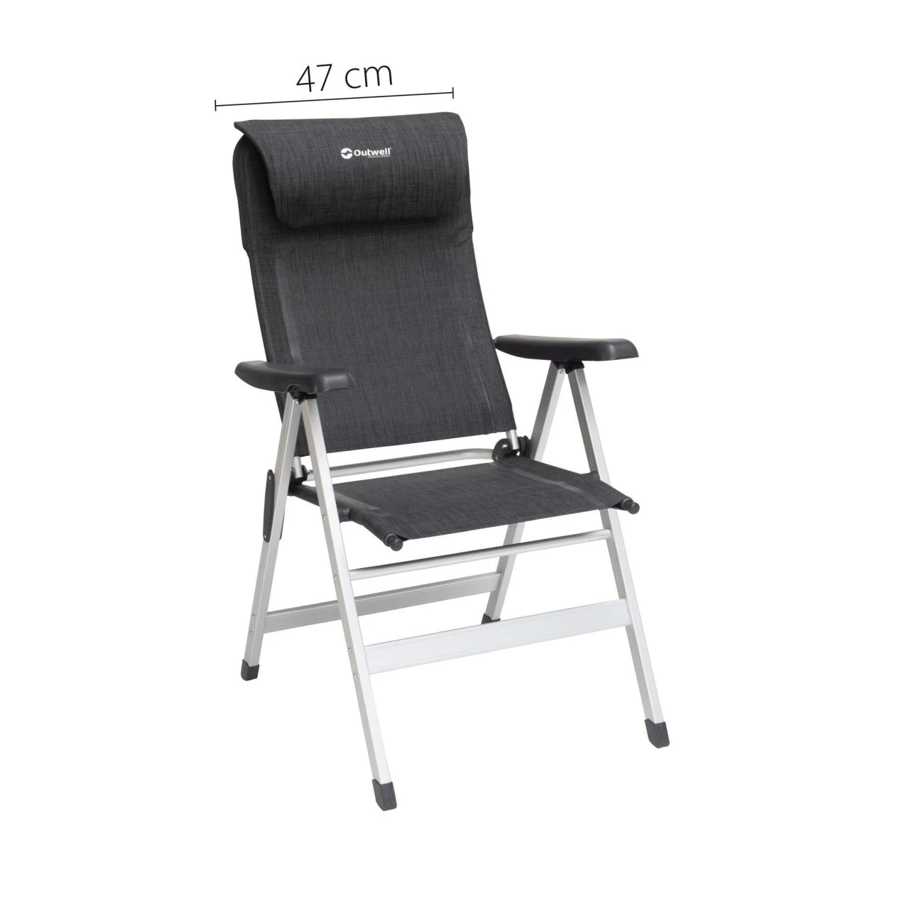 Ein leichter Stuhl, der gut zu transportieren ist, trotzdem stabil und eine gute Sitzposition ermöglicht: Der Outwell Milton Klappstuhl. Der Stuhl ist bis 125 kg belastbar, die Lehne kann in 7 Positionen verändert werden und die Kopfstütze lässt sich höhenverstellen, wodurch sich der Outwell Milton Klappstuhl auch für große Personen eignet. Eine perfekte Sitzgelegenheit für den Campingtisch oder um in der Sonne zu relaxen.