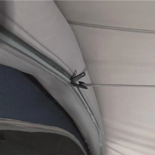 In der Ambassador Schlafkabine ist mit 2,30 m Tiefe und voller Stehhöhe so viel Platz, dass auch ein Feldbett in das Innenzelt gestellt werden kann. Auch am Innenzelt ist eine Quick & Quiet Tür angebracht, so dass man die Schlafkabine nahezu geräuschlos betreten oder verlassen kann. Das abgedunkelte Material hilft dabei, länger und ausgeruhter zu schlafen. Durch den Vorhang mit Reißverschlüssen kann das Innenzelt in zwei einzelne Schlafkabinen geteilt werden. An der Rückseite des Zeltes sorgt das Rear Vent System für eine individuell einstellbare Belüftung.