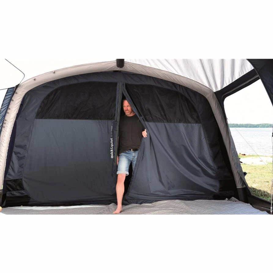 Im Vorraum des Mountain Lake 5ATC von Outwell ist genügend Platz, um eine Küche aufzustellen. Da eine einhängbare Bodenplane für den Vorraum mitgeliefert wird, könnt ihr den Wohnraum vergrößern, in dem ihr die Quick & Quiet Tür komplett zur Seite rollt und die Tür am Eingang schließt. Der Vorbereich kann aber ohne Boden auch ideal als Fahrrad Abstellraum genutzt werden.
