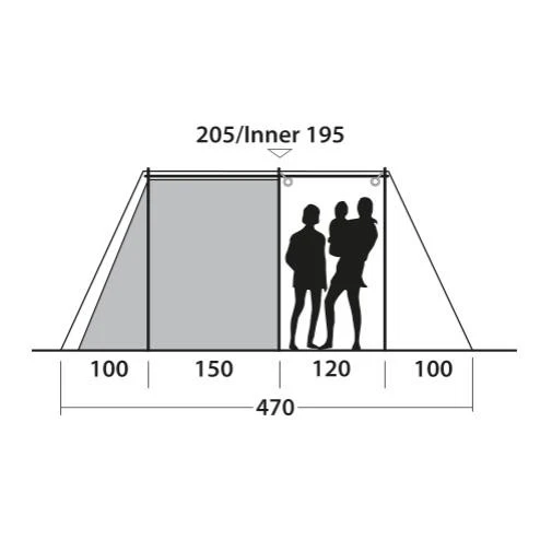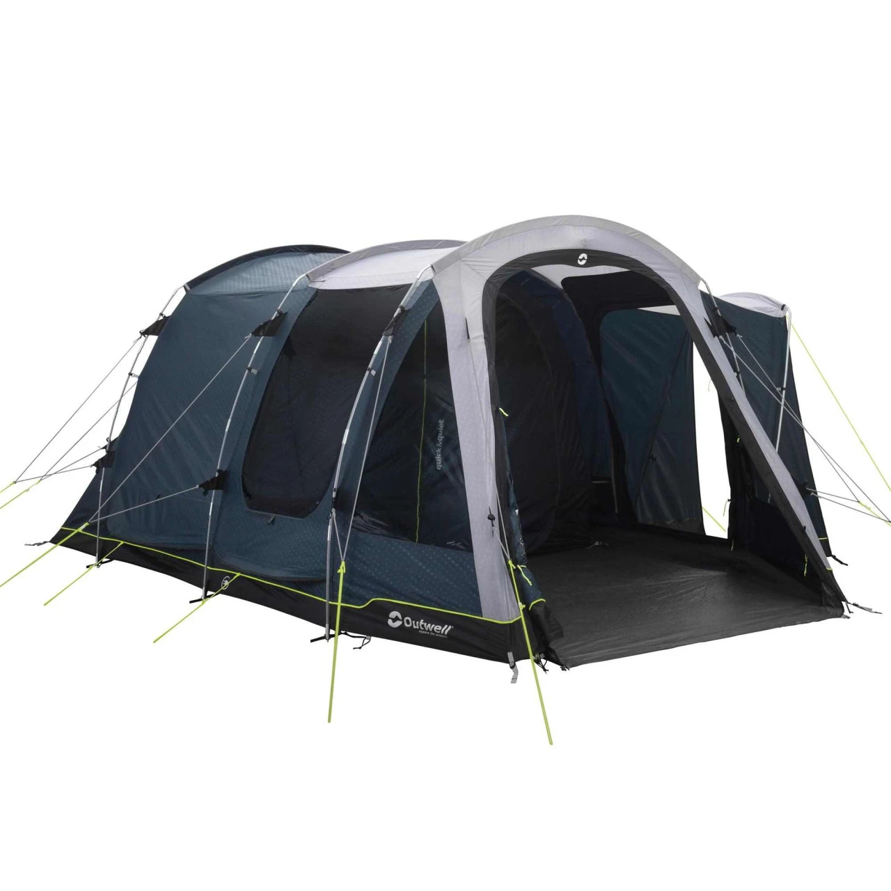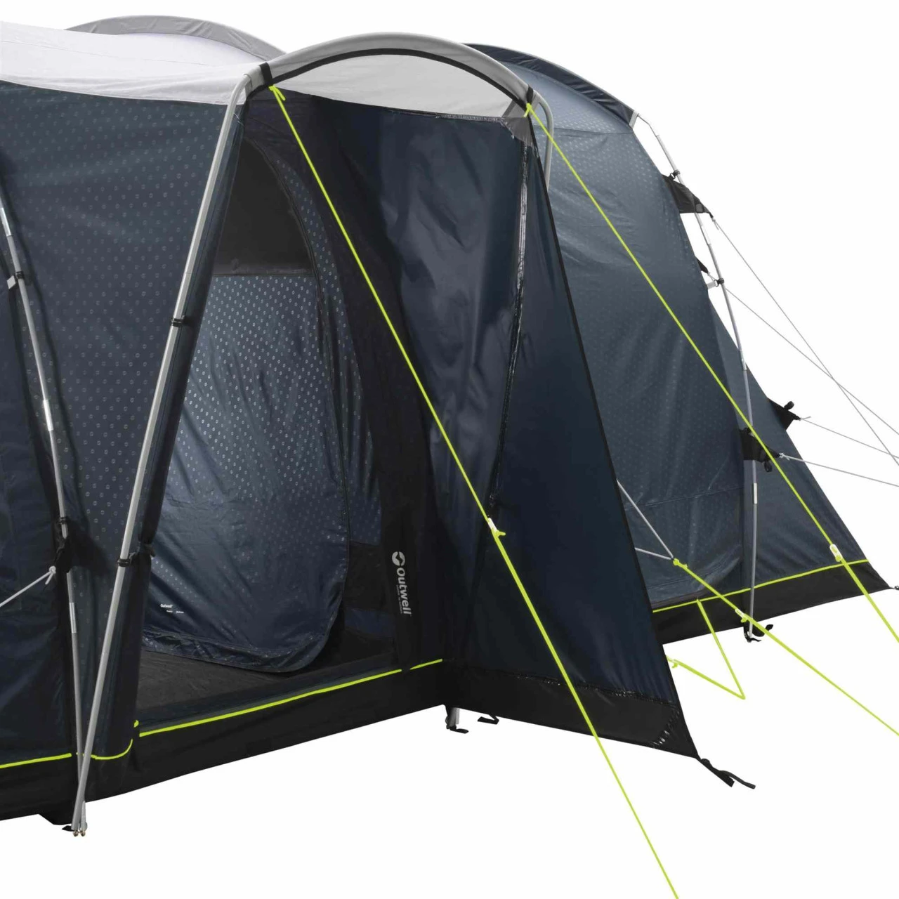Das kompakte Nevada 4PE Familienzelt von Outwell ist ein optimales Zelt für Paare und junge Familien. Mit dem flexiblem und leichtem Duratec-Gestängesystem lässt es sich schnell aufbauen. Der überdachte Seiteneingang, der so typisch für das Nevada-Design ist, wurde verbessert und hat zwei wegrollbare Seitenpaneele bekommen, die noch besser vor schlechtem Wetter schützen. Die abgedunkelte Ambassador Master Schlafkabine bietet mit 230 cm Tiefe und der vollen Stehhöhe genügend Platz, um bequem auch Feldbetten aufzustellen. Die Quick & Quiet Tür ermöglicht ein nahezu geräuschloses Verlassen oder Betreten der Schlafkabine, die durch einen Reißverschlussvorhang in zwei Einzelkabinen geteilt werden kann. Der große Fronteingang des Nevada 4 Familienzeltes kann mit Hilfe des doppelten Reißverschlusses komplett geöffnet werden. Er ist aber auch mit einem Moskitonetz ausgestattet, so dass auch nachts gelüftet werden kann, ohne dass Insekten ins Zelt gelangen. Neu ist neben der individuell einstellbaren Belüftung über die komplette Rückseite jetzt auch ein „Low-Ventilation-System“ an der Schlafkabine. Große getönte Fenster mit aufrollbaren Vorhängen verhindern neugierige Blicke ins Zelt.